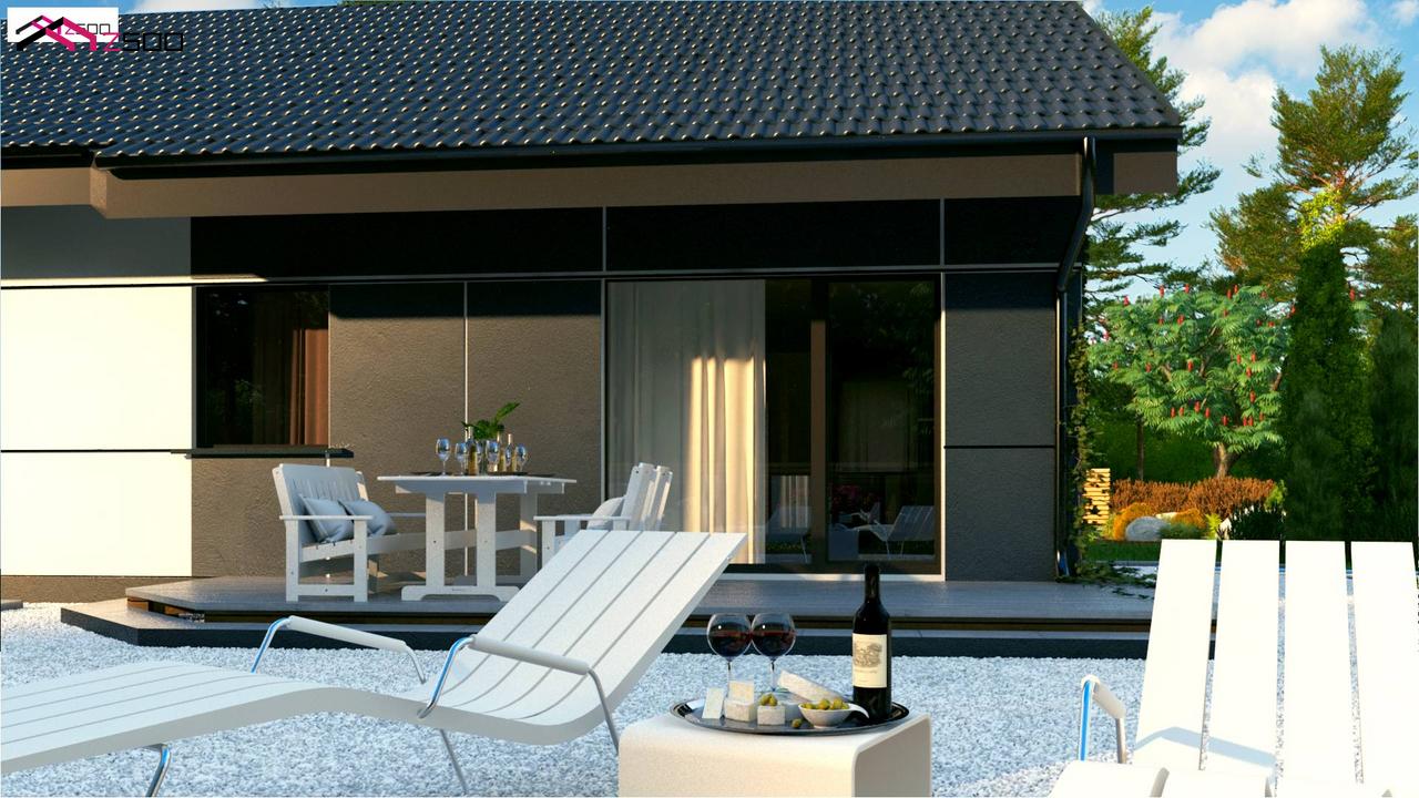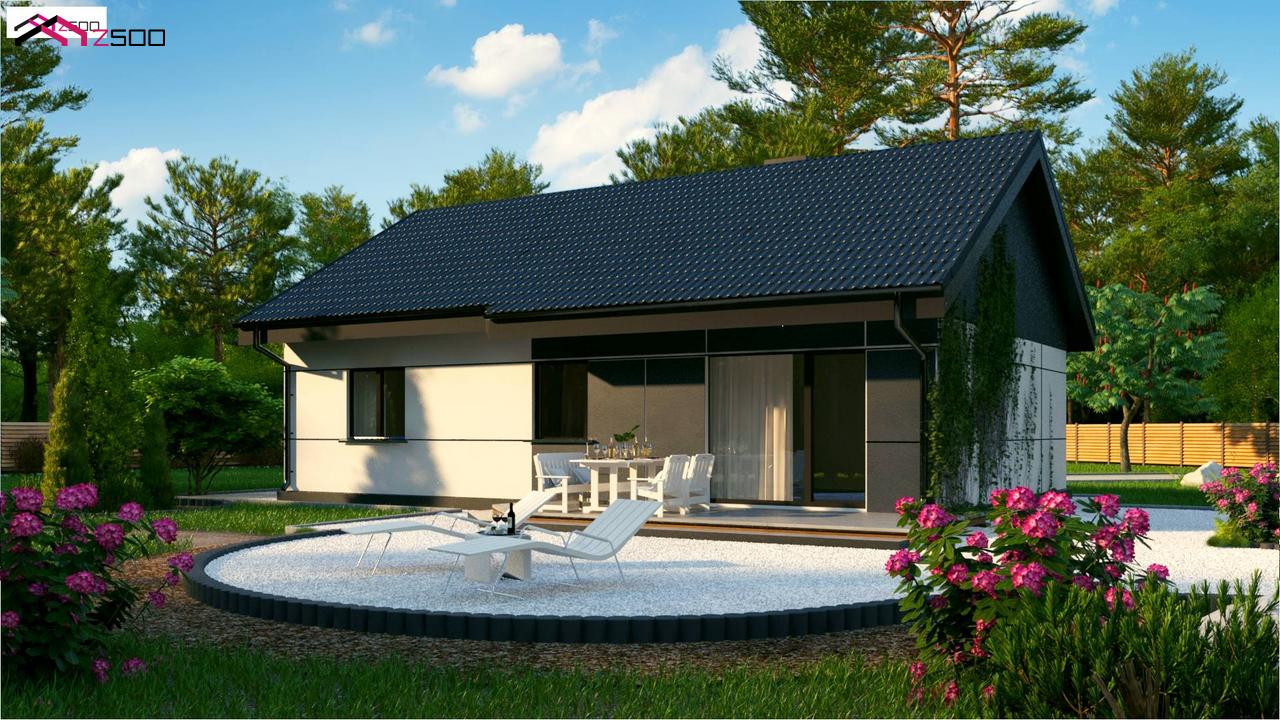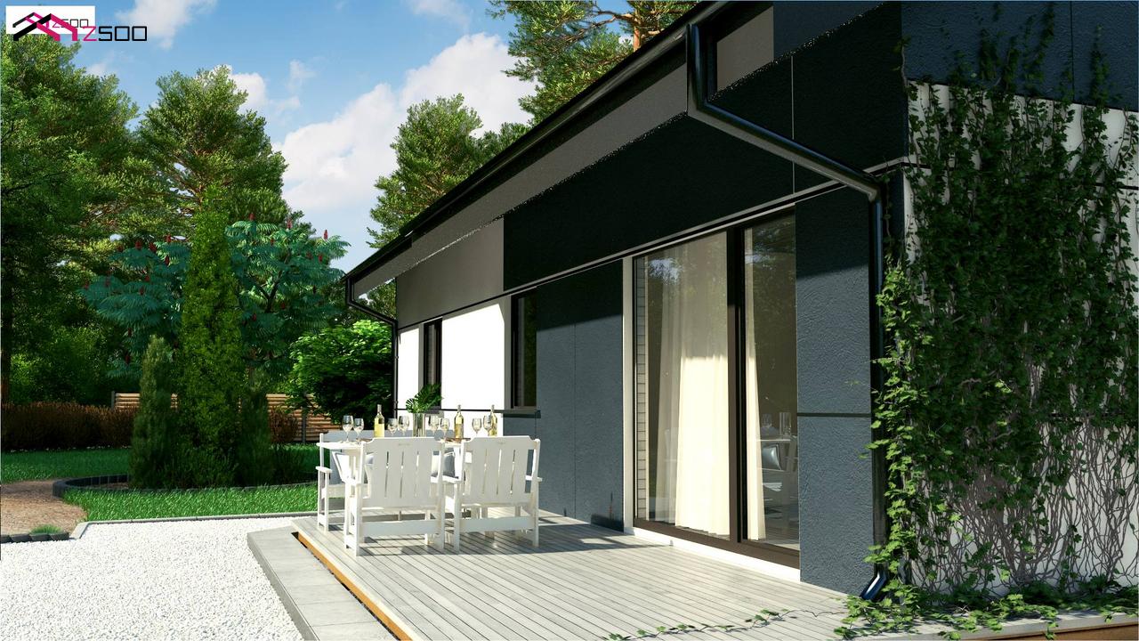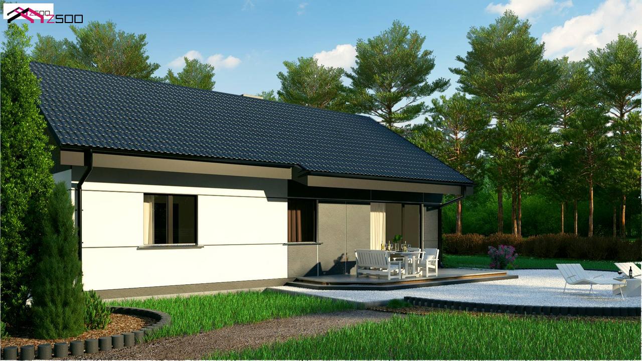 Z454 представляет собой проект одноэтажного дома традиционной формы с современным экстерьером.