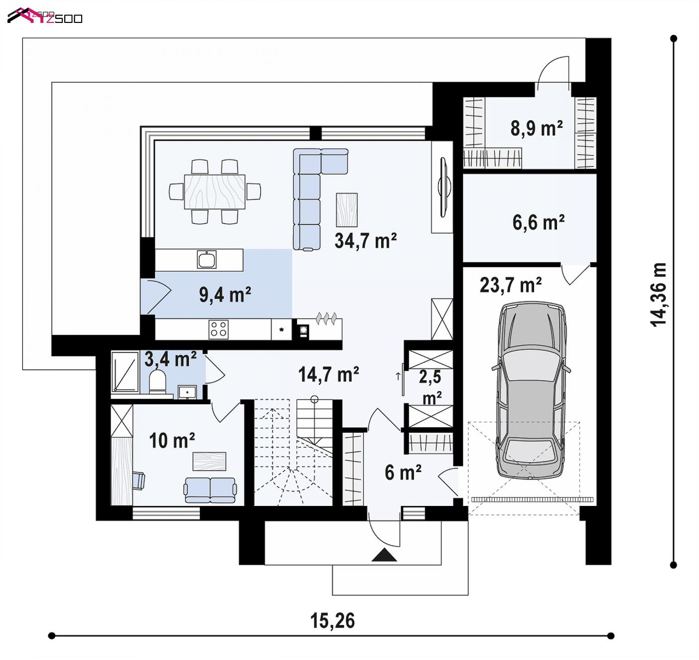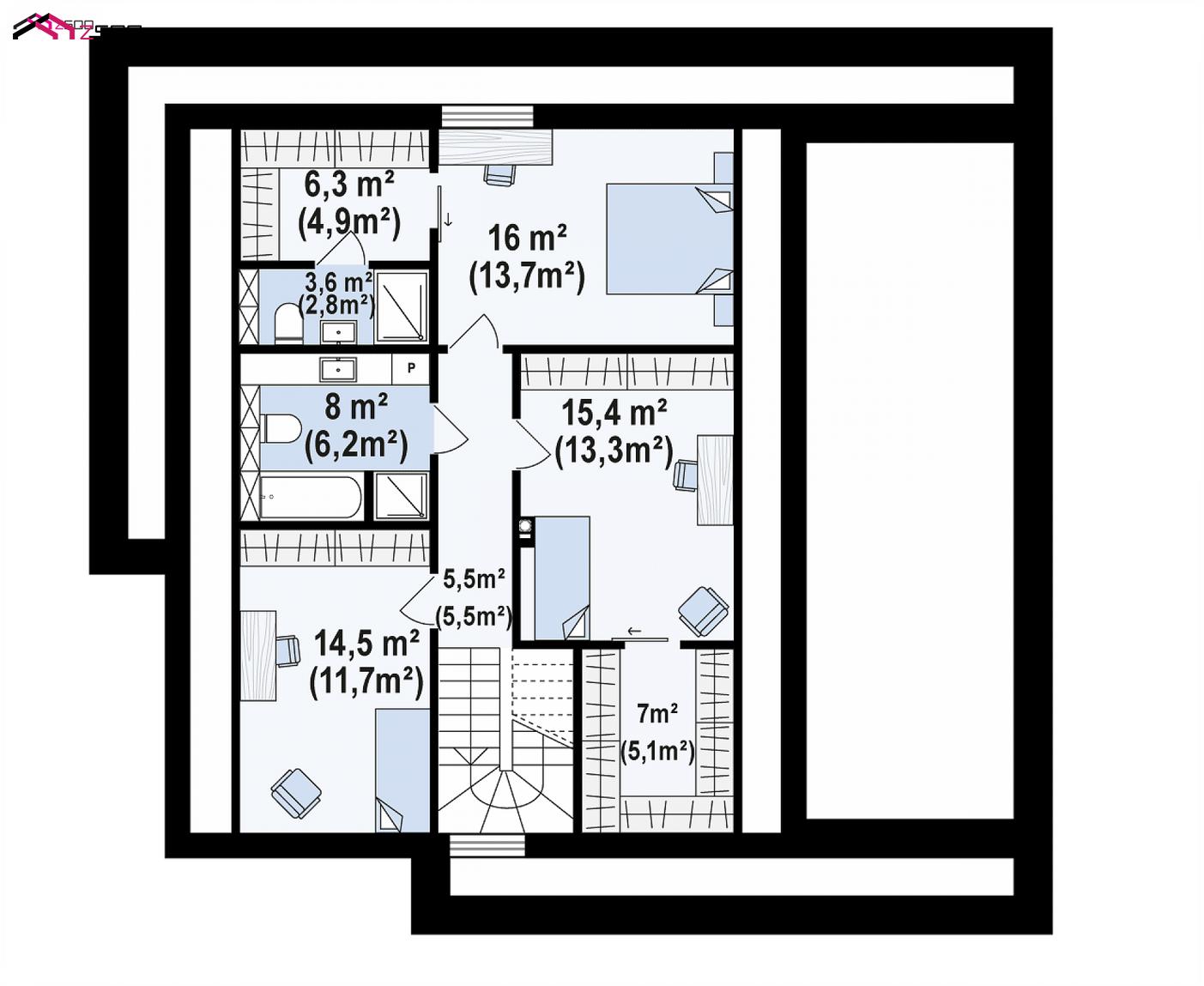 • Дом Z456 гармонично впишется в загородный пейзаж и будет актуален в черте города.