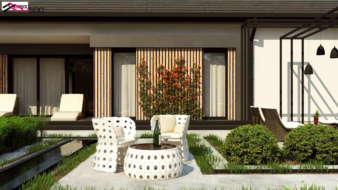 Z459 v1 представляет собой вариант одноэтажного дома Z459 без гаража с изменённой планировкой.