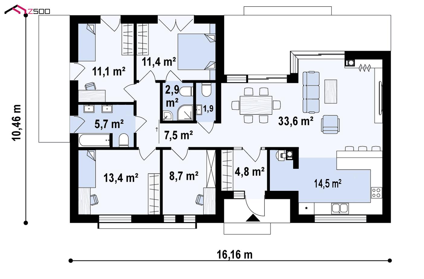Z461 v1 представляет собой вариант проекта Z461 с увеличенной площадью котельной.