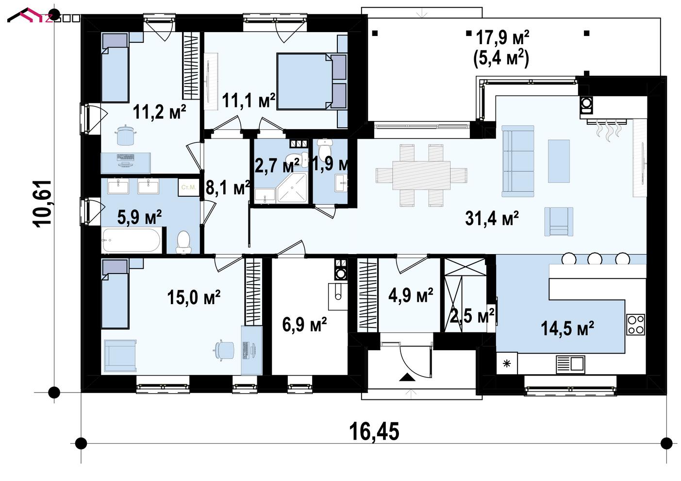 Проект Z461 – отличный вариант комфортного просторного дома для тех, кто предпочитает нестандартные решения.