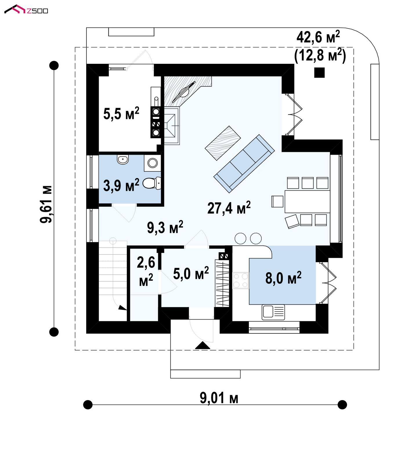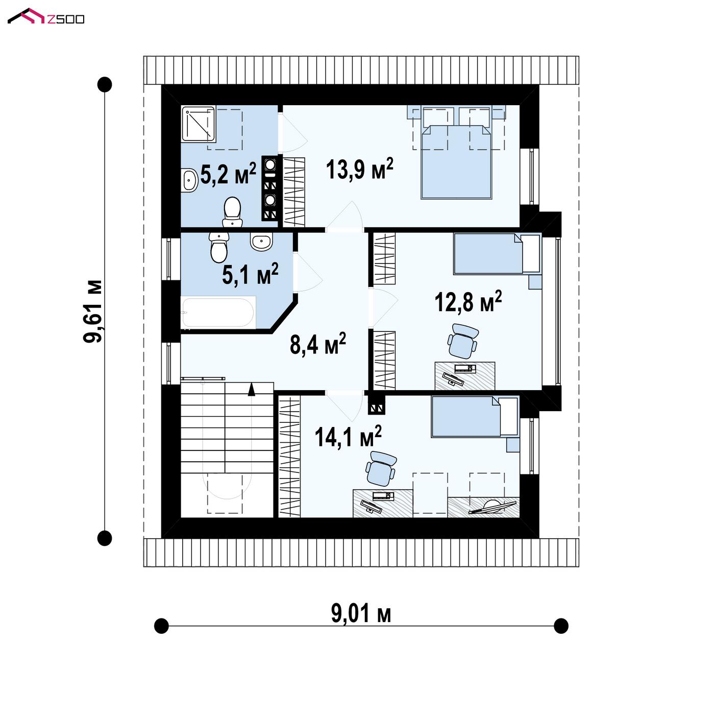 Проект мансардного дома Z47 выделяется среди других таким характерным элементом