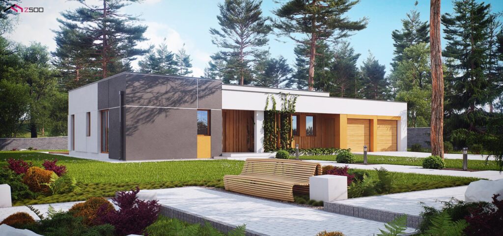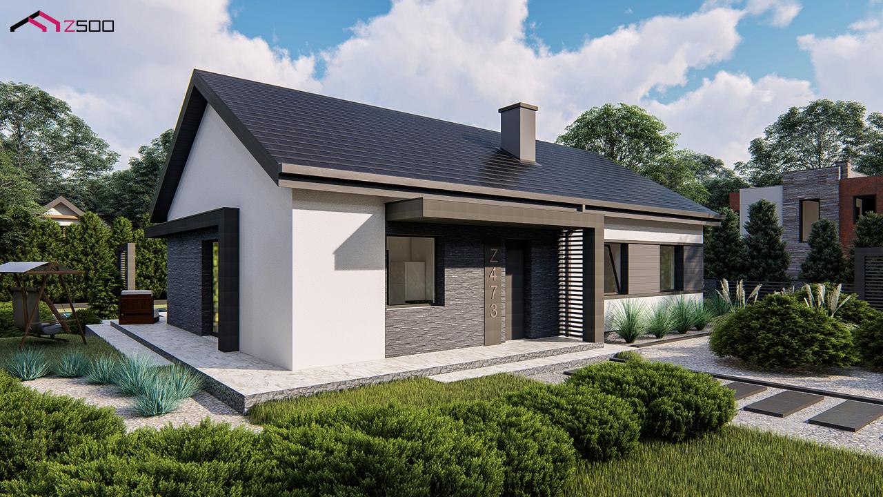 Проект Z473v1 – лаконичная форма и строгие линии позволяют удачно расположить этот объект даже на небольшом участке.