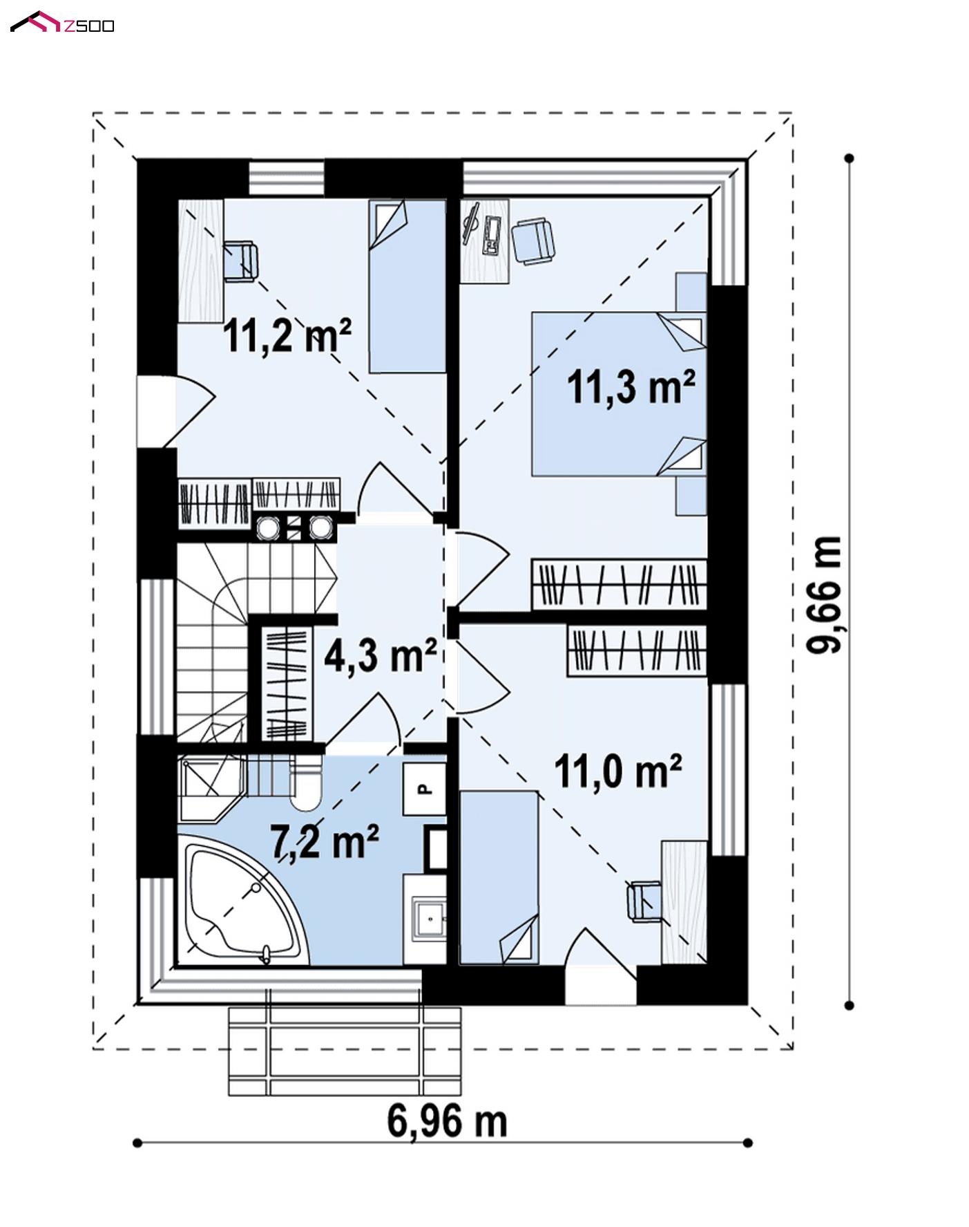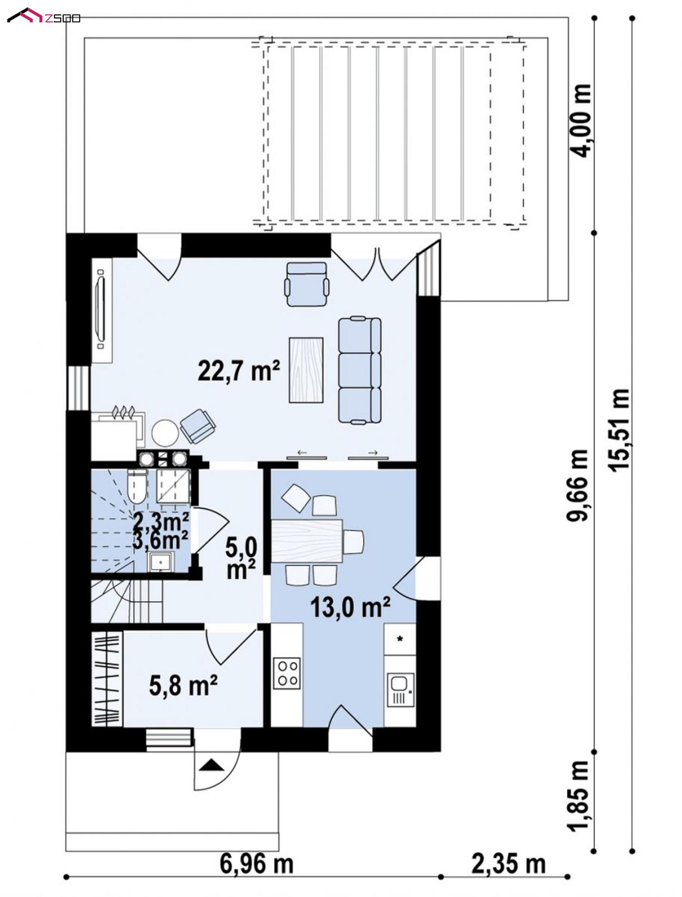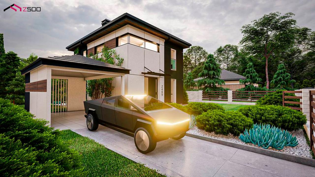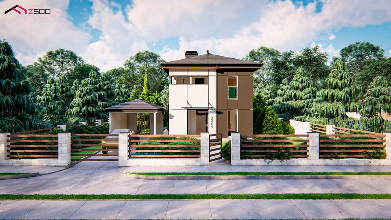 Проект Z489– идеальный вариант для тех, кто ищет уютный, эргономичный, удобный в эксплуатации и экономичный в строительстве дом с элегантным современным оформлением экстерьера.