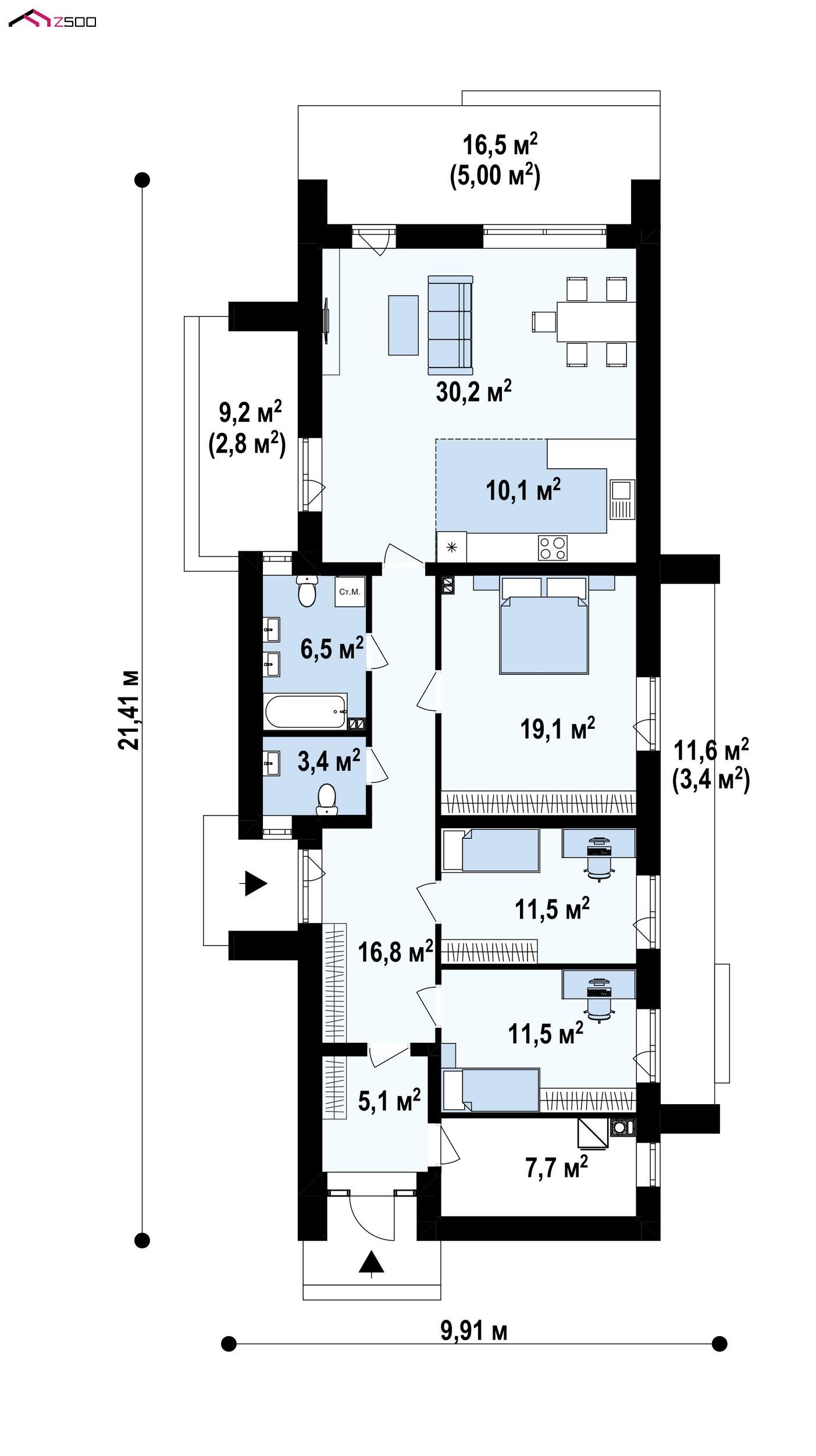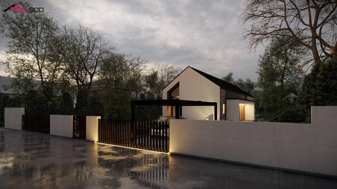 Проект Z525  способен воплотить в реальность мечты о современном комфортном доме с уютной и удобной планировкой пространства и необычным внешним видом. Дом рассчитан для проживания семьи с двумя детьми.