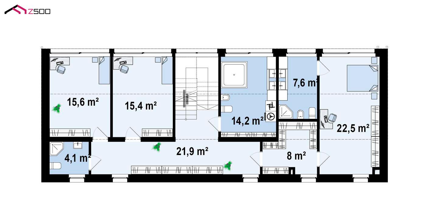Проект Z540 благодаря стильному экстерьеру и уютному просторному интерьеру привлекает застройщиков разных поколений. Дом, возведённый по данному проекту, – идеальное решение для больших семей, которые ценя комфорт и большие светлые пространства.