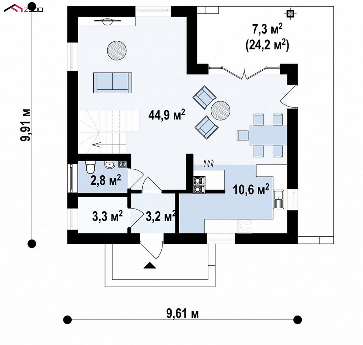 делают дом более экономичным в строительстве и эксплуатации. - В дневной зоне выделены отдельные