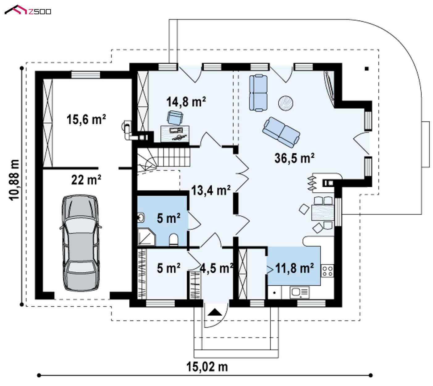 Вариант Z63 c внесенными изменениями в планировку и гаражом для 1 авто