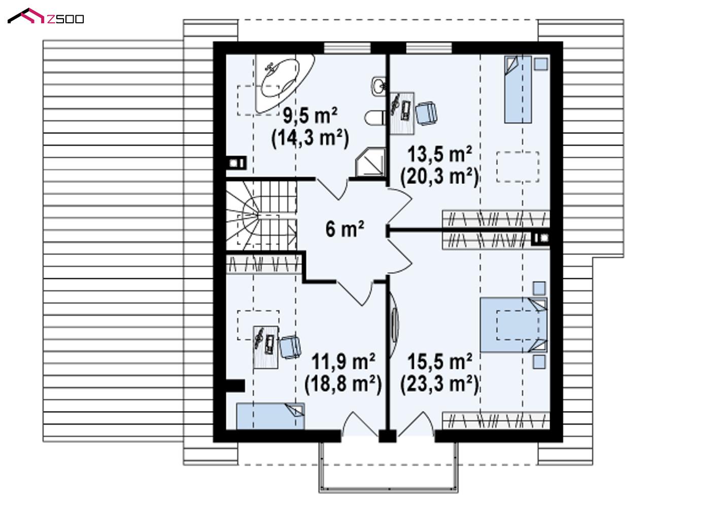 - Приватная зона с тремя спальнями расположена на мансарде.