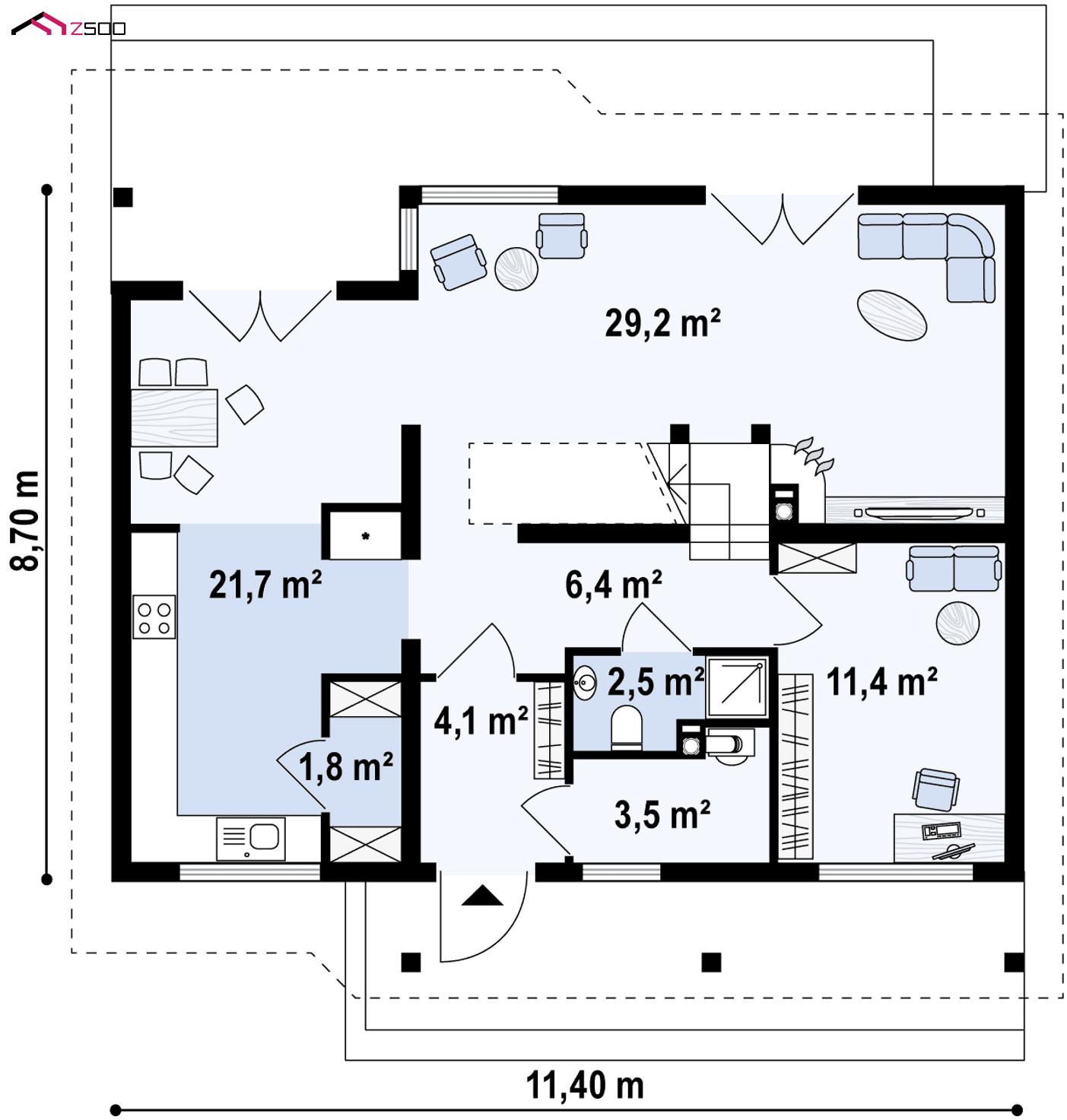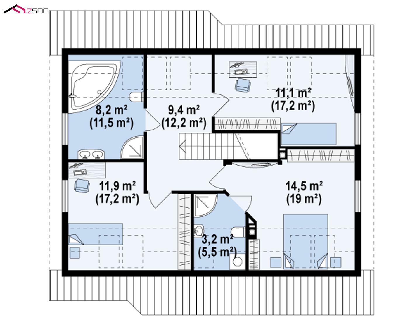 Z66 D zp представляет собой дом с мансардой с двускатной крышей и комнатой на первом этаже.