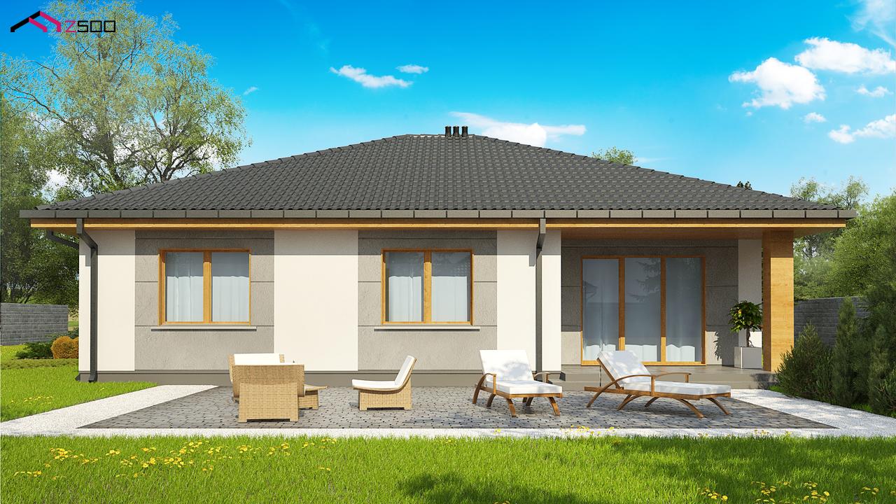 Z67 А – это одноэтажный коттедж с четырьмя спальнями порадует своей простотой и многофункциональностью. Дизайн дома в классическом стиле прекрасно сочетается с его внутренней планировкой.