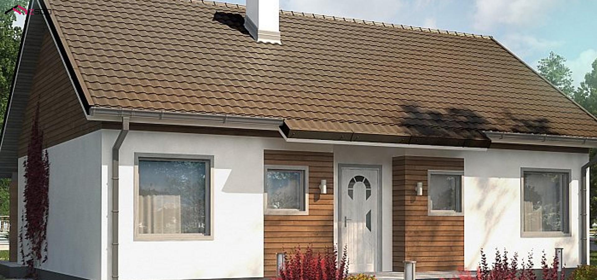 Проект небольшого одноэтажного дома в европейском стиле с двускатной кровлей.