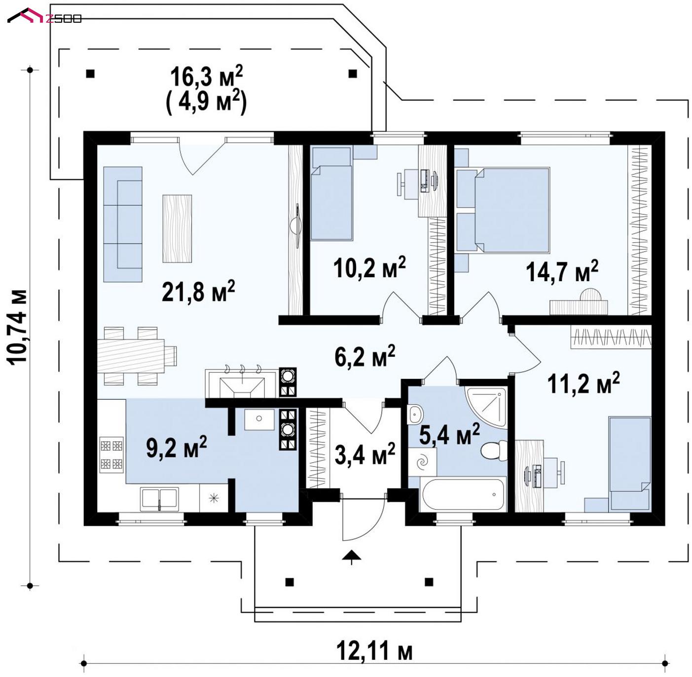 Z7 dk представляет собой функциональный и практичный проект дома Z7 в каркасном исполнении.