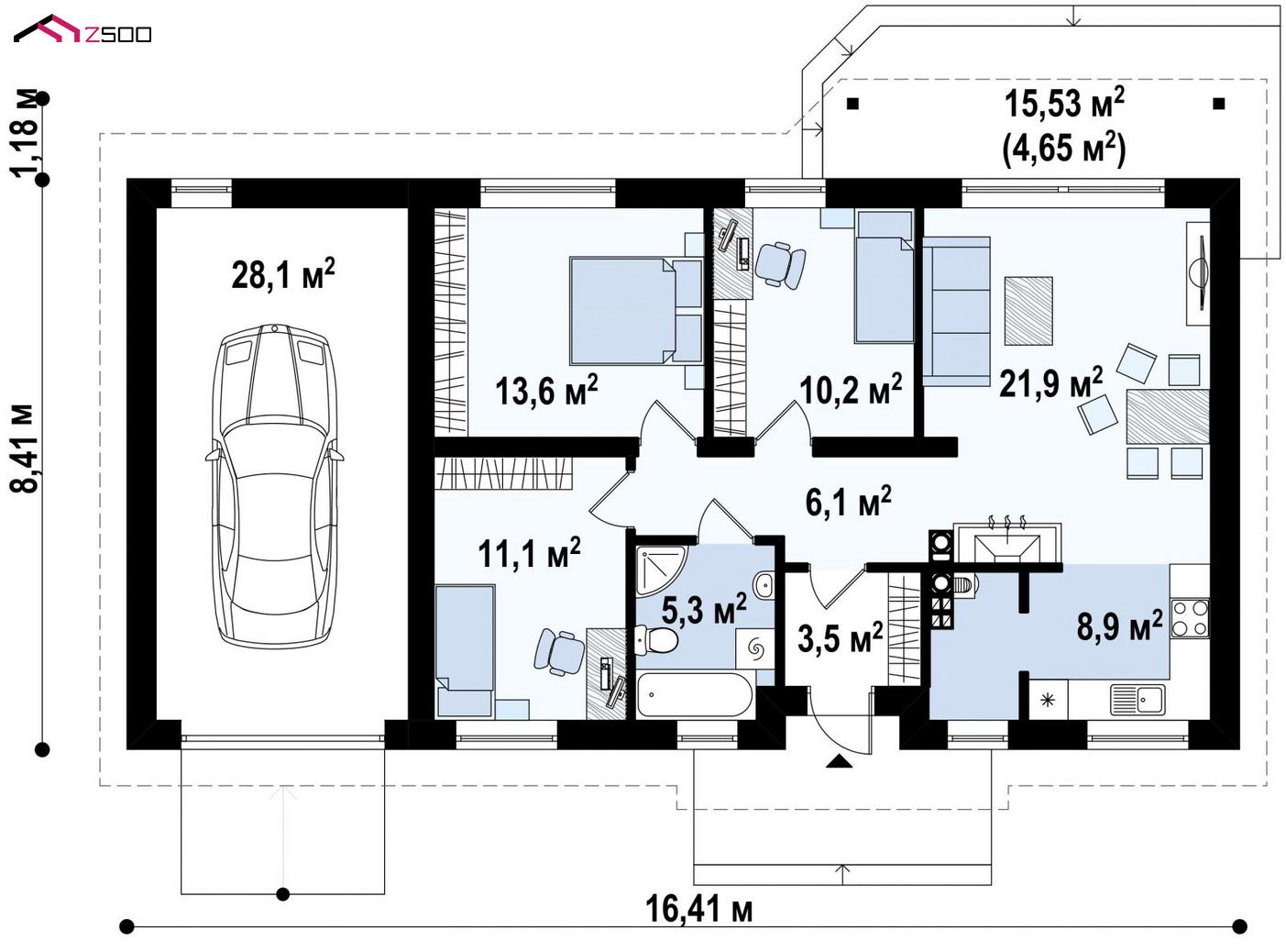 Проект Z7 с гаражом с левой стороны и измененной планировкой.