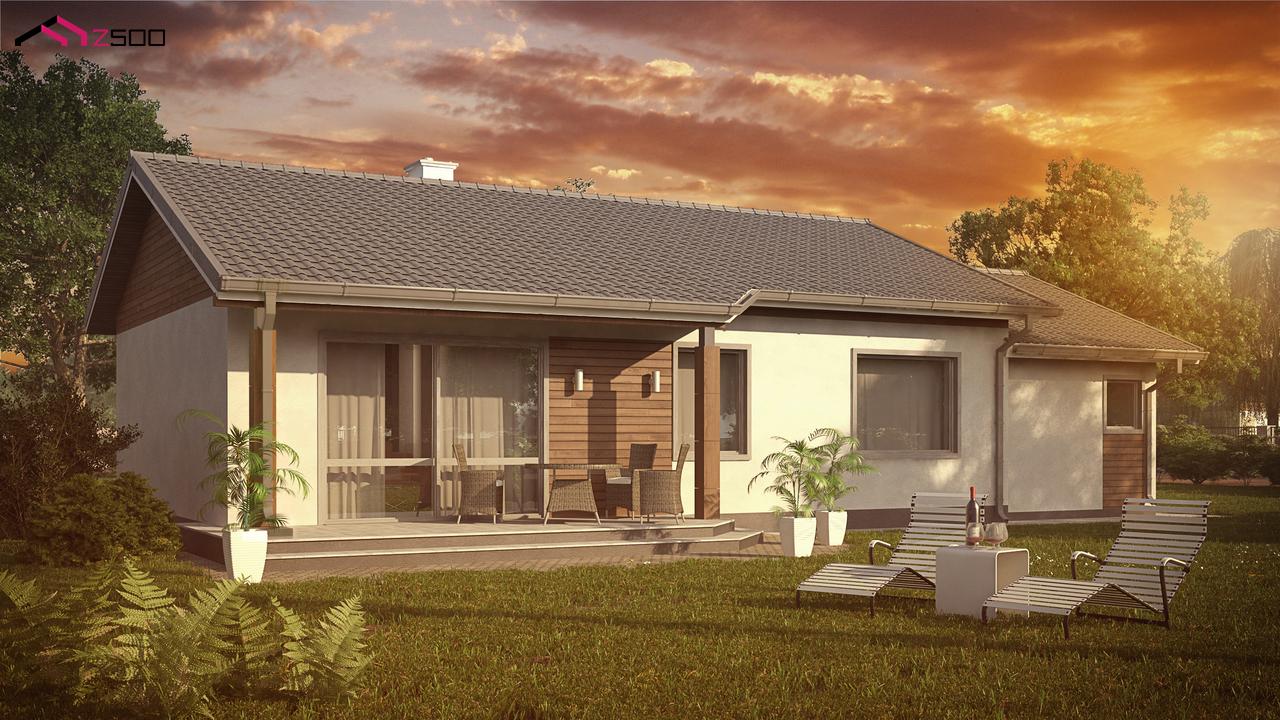 Разработка Z 7 L GL это зеркальное отображение проекта Z7 с гаражом с левой стороны. Элегантный дом с органично встроенным гаражным блоком выполнен в светлой цветовой гамме. Классическая отделка деревянными панелями, характерная для Европы, выигрышно смотрится на светлом фасаде. Все помещения спроектированы на первом уровне и разделены по своему назначению. Справа устроена дневная зона открытого типа. Часть, в которой расположена гостиная, соединена с открытой террасой. Слева располагается ночная зона — здесь спроектированы три спальни. Для всех помещений дома предусмотрена одна общая ванная.