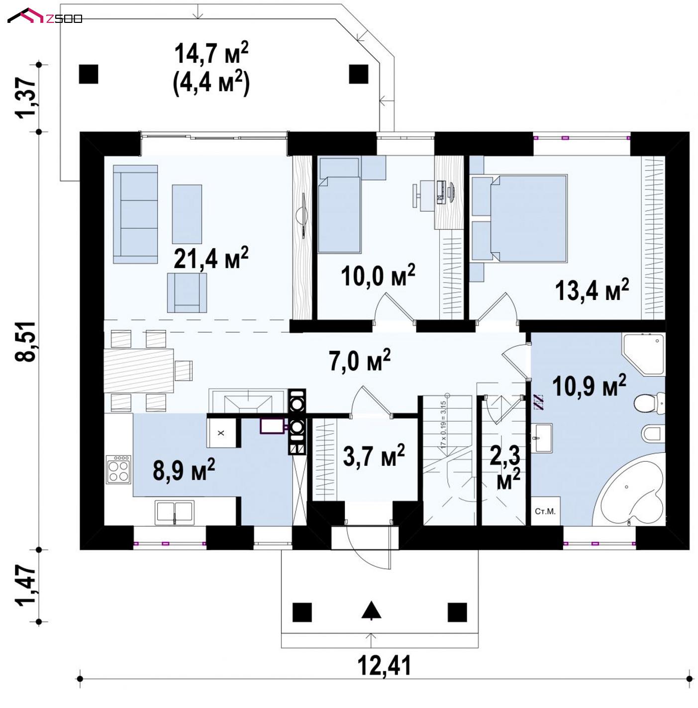 Версия проекта Z7 с мансардным этажом, угол наклона кровли 35 градусов.