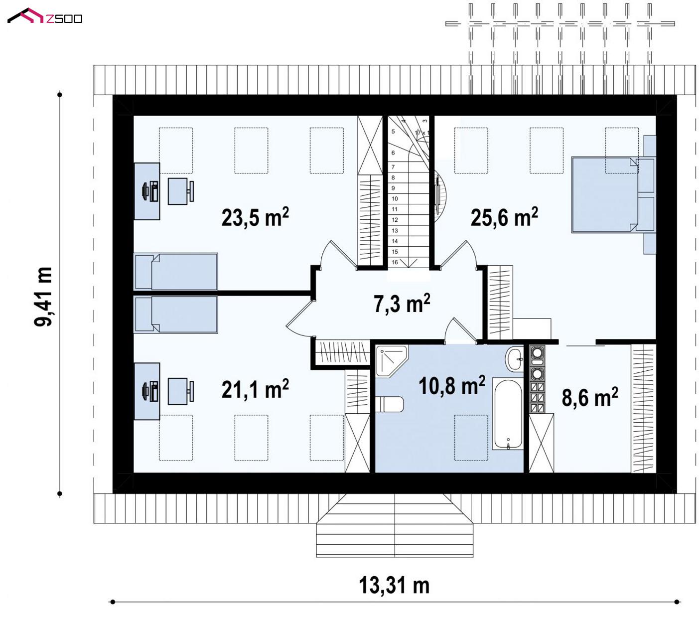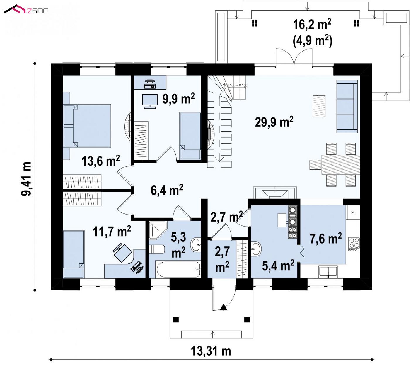 Z8 B 40 представляет собой удобный дом с двускатной кровлей. Проект выгоден в строительстве и прост в эксплуатации.