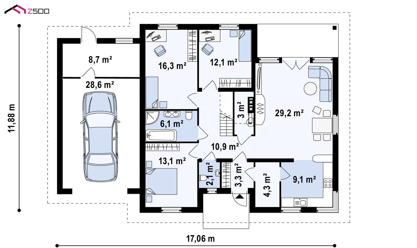 Проект Z84 GL с шестью комнатами отличное решение для больших и гостеприимных семей.