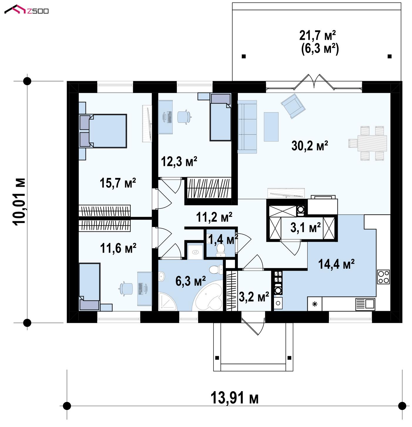 Проект Z91 представляет собой одноэтажный дом простой формы