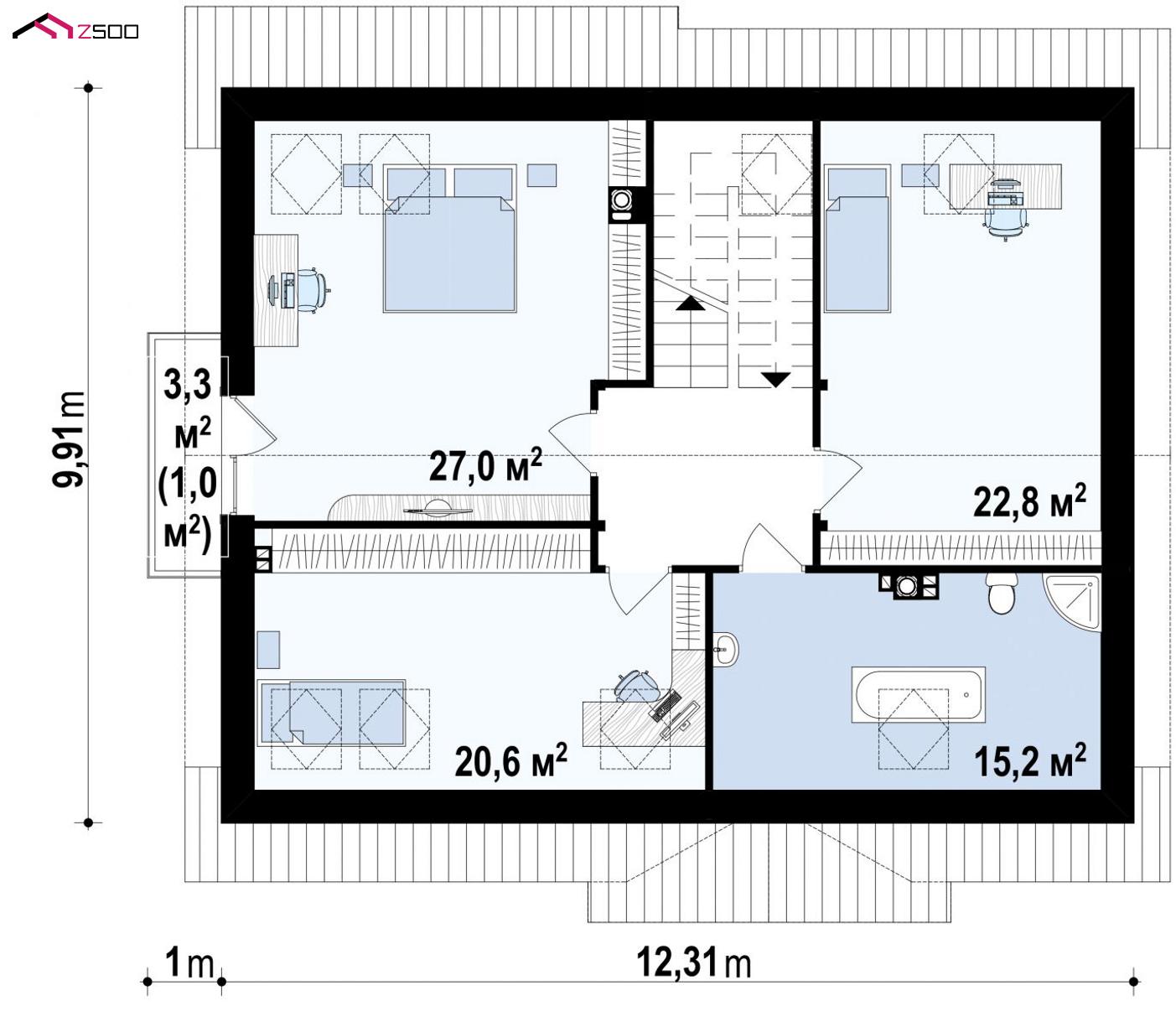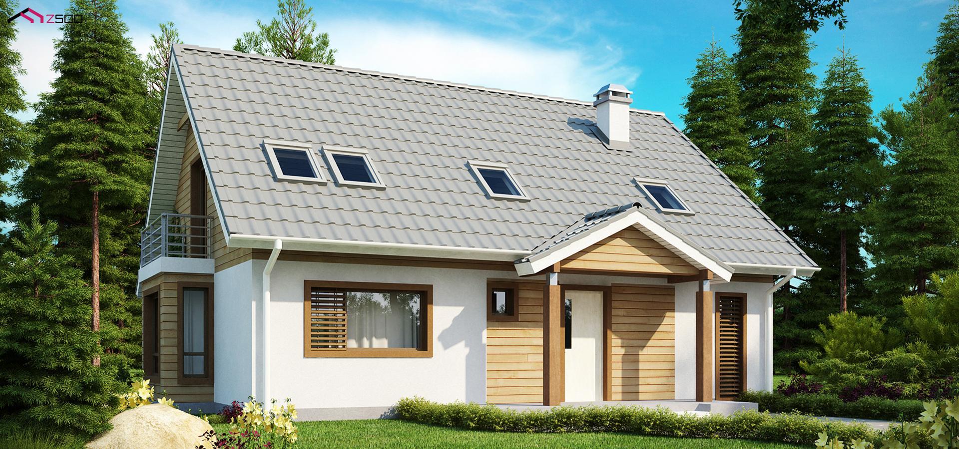 Проект Z95 — это дом с мансардой, с эркером и балконом, со