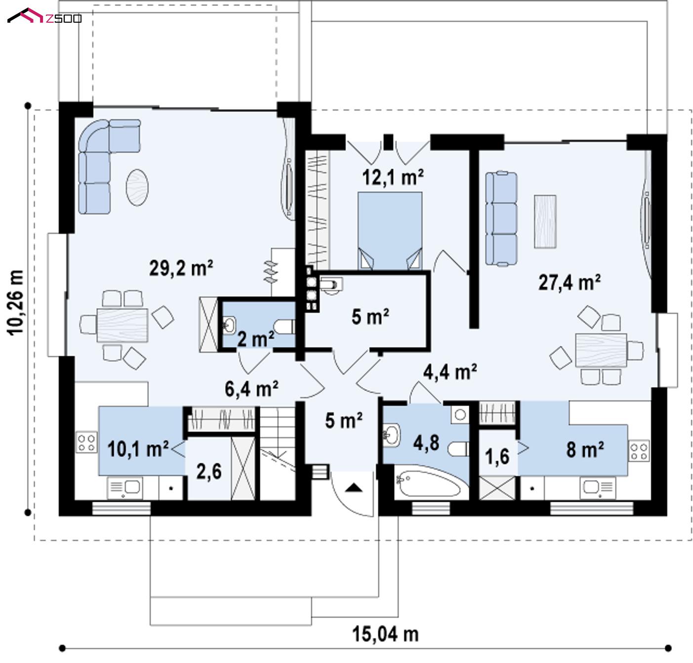 Z97 — это проект двухсемейного дома с отдельной удобной