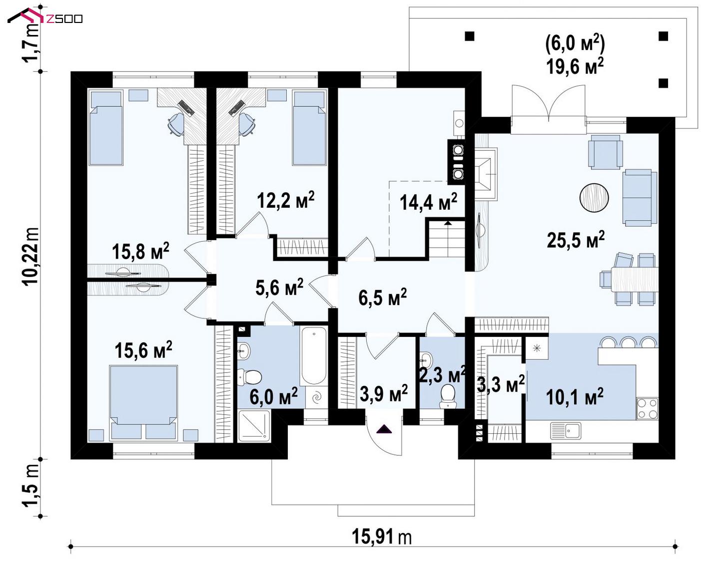 Z98это проект выгодного одноэтажного дома с возможностью