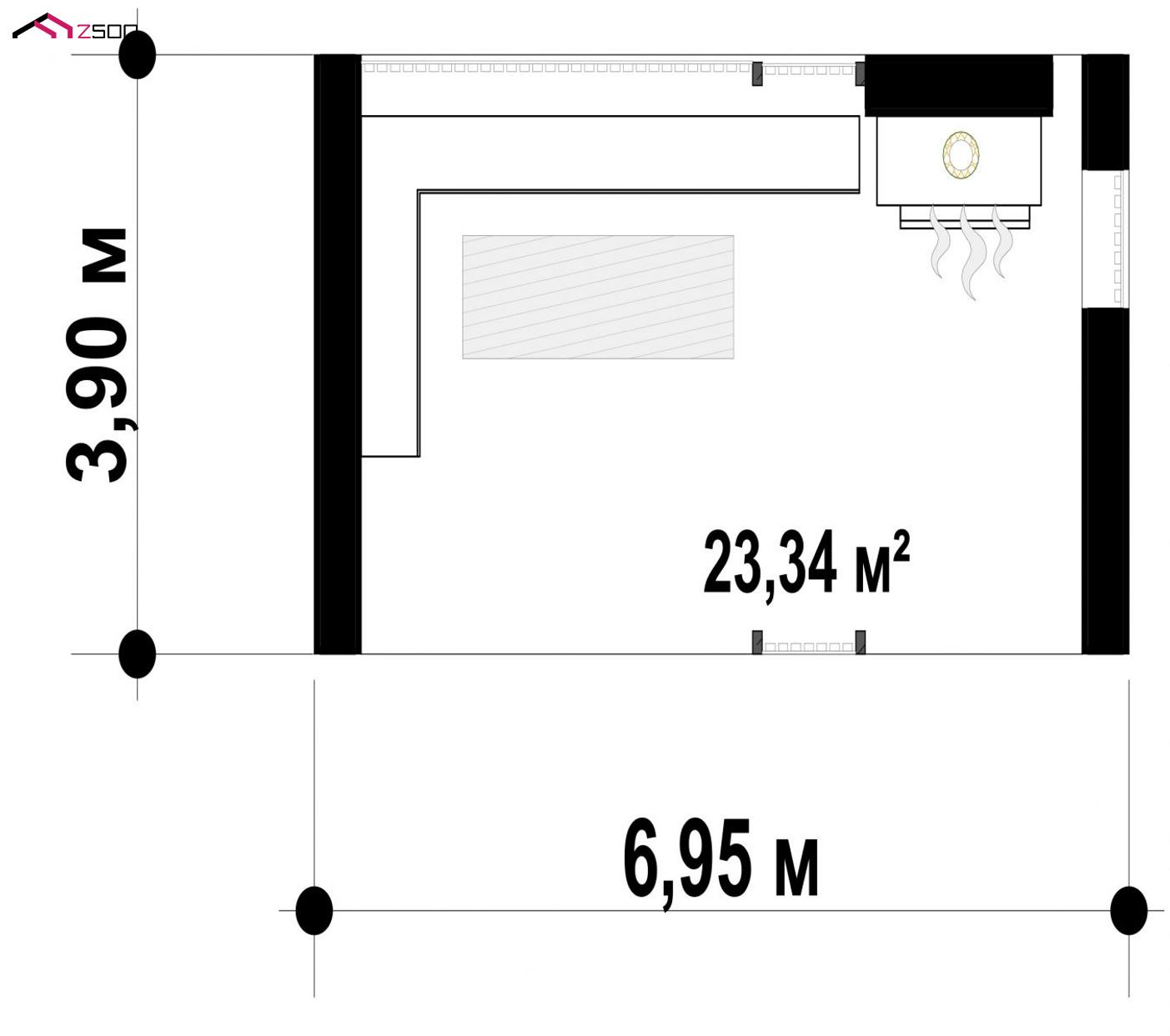 | Общая площадь | 23.3 м² |
