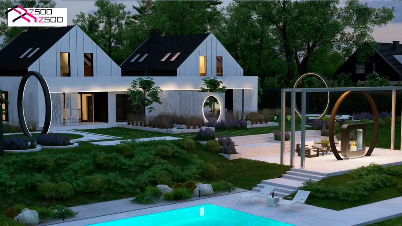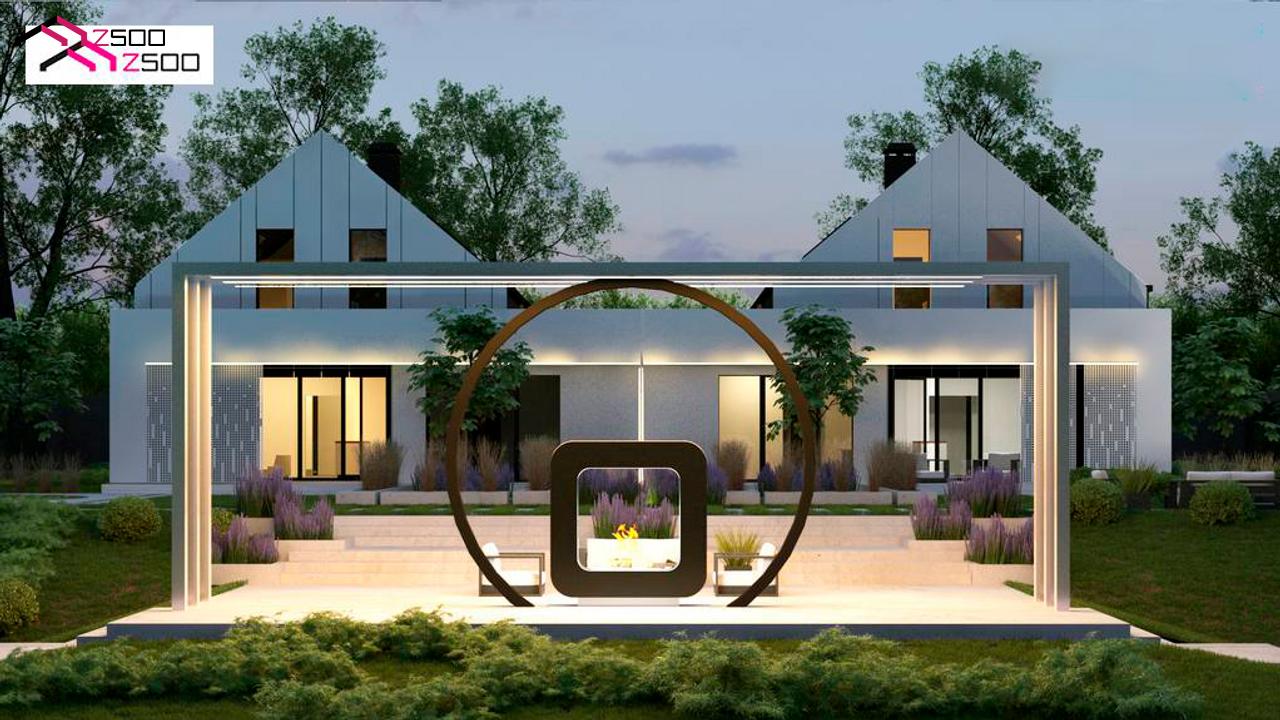 Современный двухсемейный дом с двускатной крышей