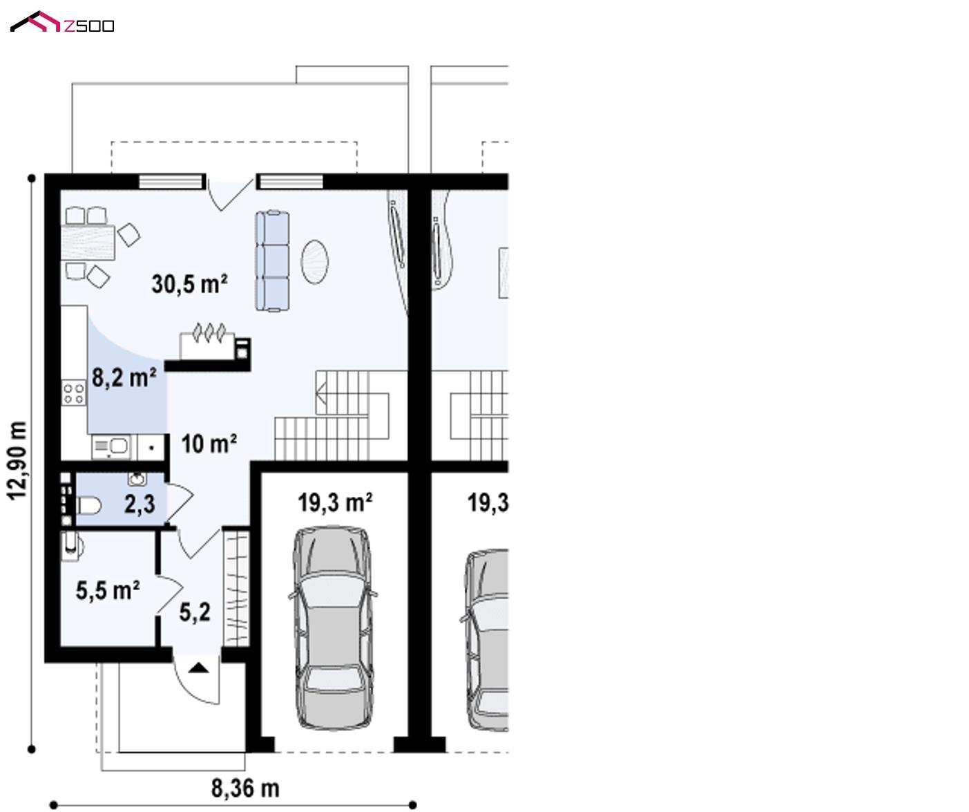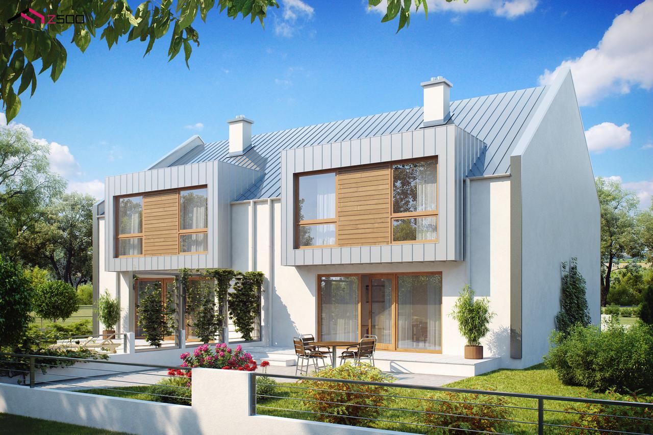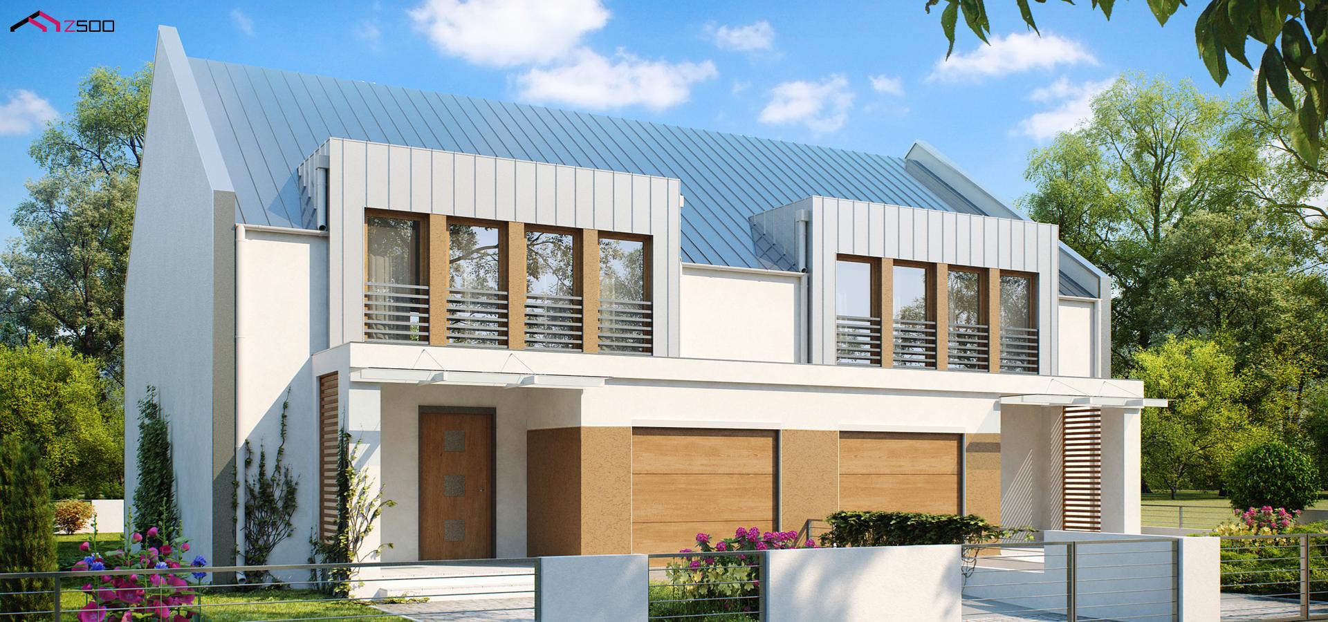 Проект Zb5 представляет дома близнецы стильного современного дизайна. Спокойная цветовая гамма, выбранная для отделки фасада, даёт возможность сосредоточить внимание на оформлении экстерьера. Панорамные окна второго уровня, слегка выступающий въезд в гараж и изящно оформленная входная группа становятся подлинным украшением проекта.