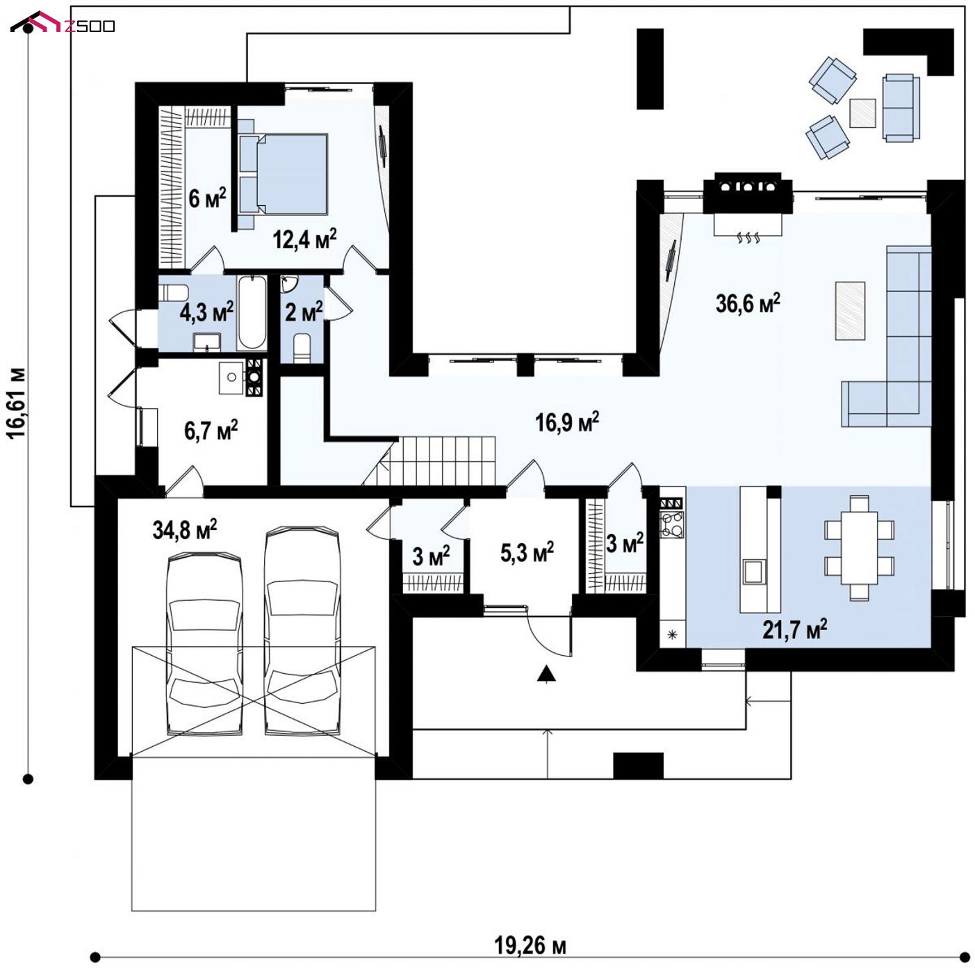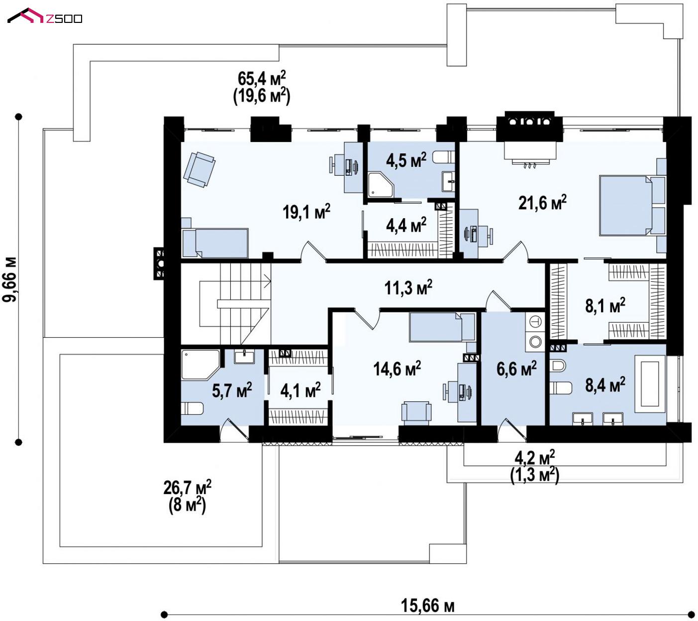 Проект Zx107 настоящий дворец в современном стиле. Дом отлично подойдет для большой семьи, члены которой любят простор и состояние свободы.