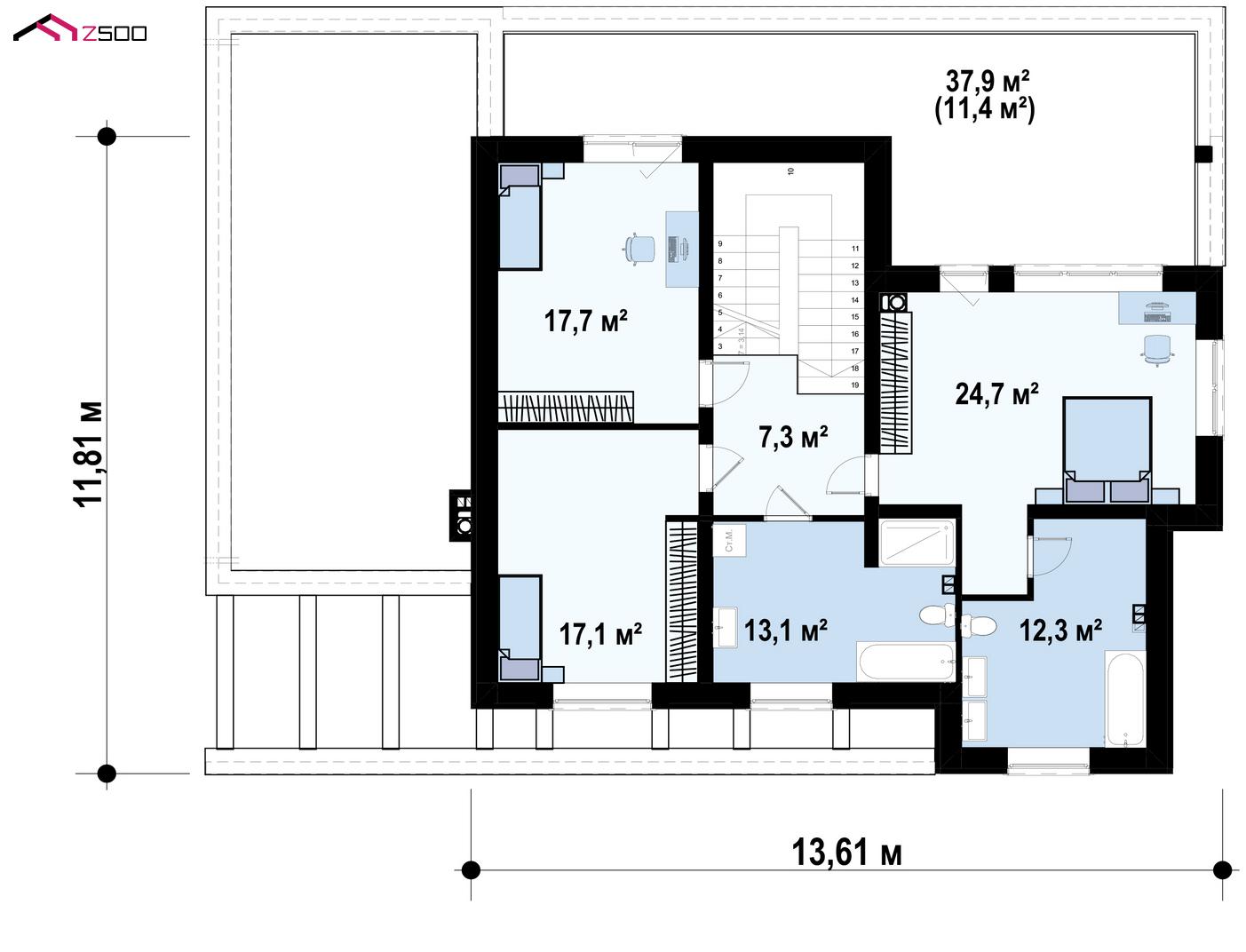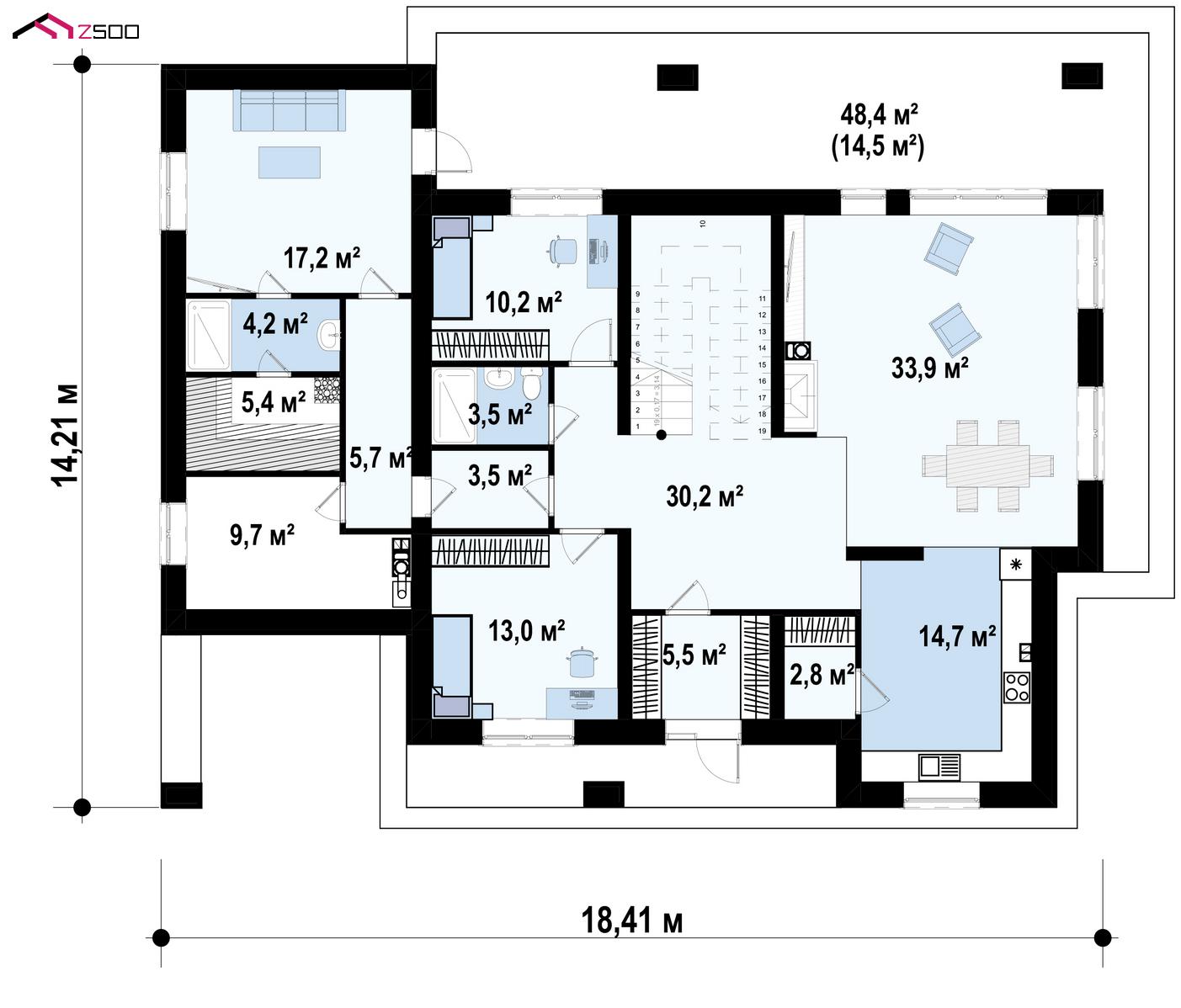Проект Zx109 v – предназначен для застройщиков, располагающих большими загородными участками, которые хотят для своей семьи большой современный дом.