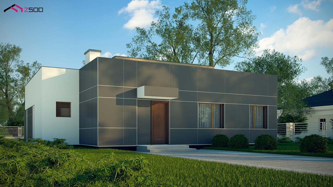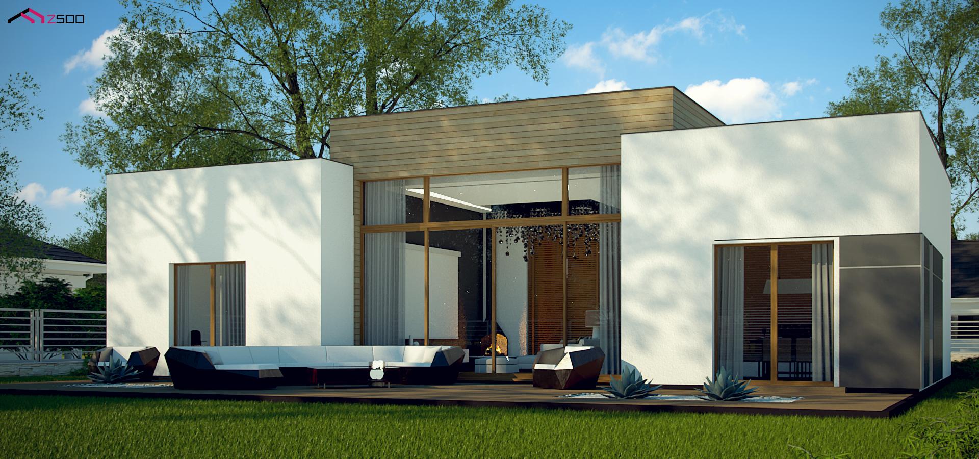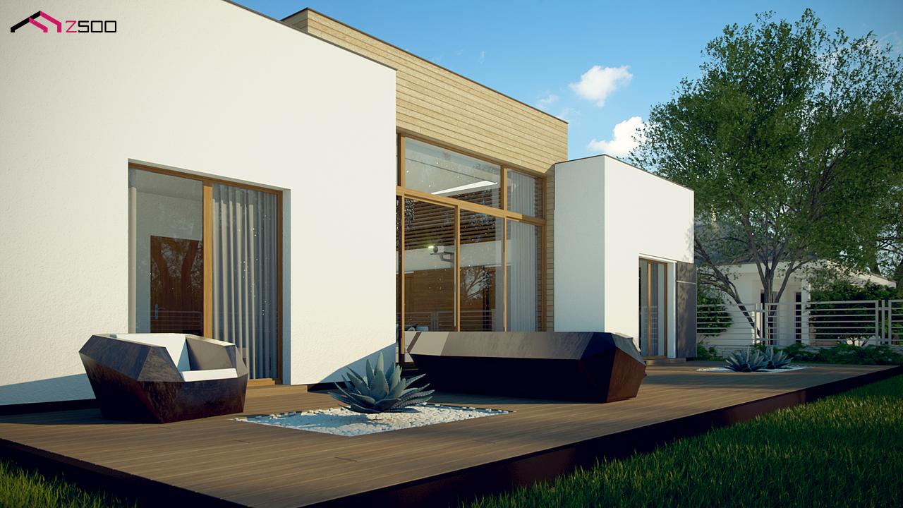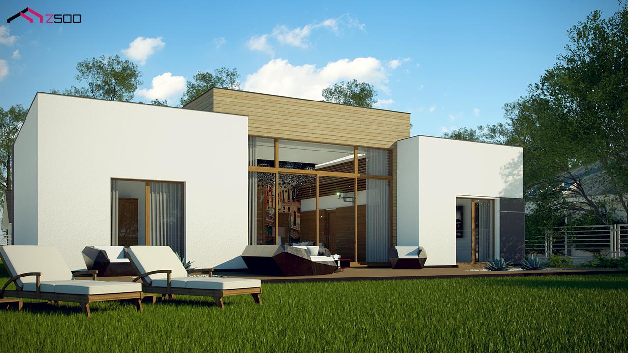 Zx111 — это одноэтажный дом в стиле современного минимализма, отличающийся плоской конструкцией кровли, средними размерами и масштабным остеклением.