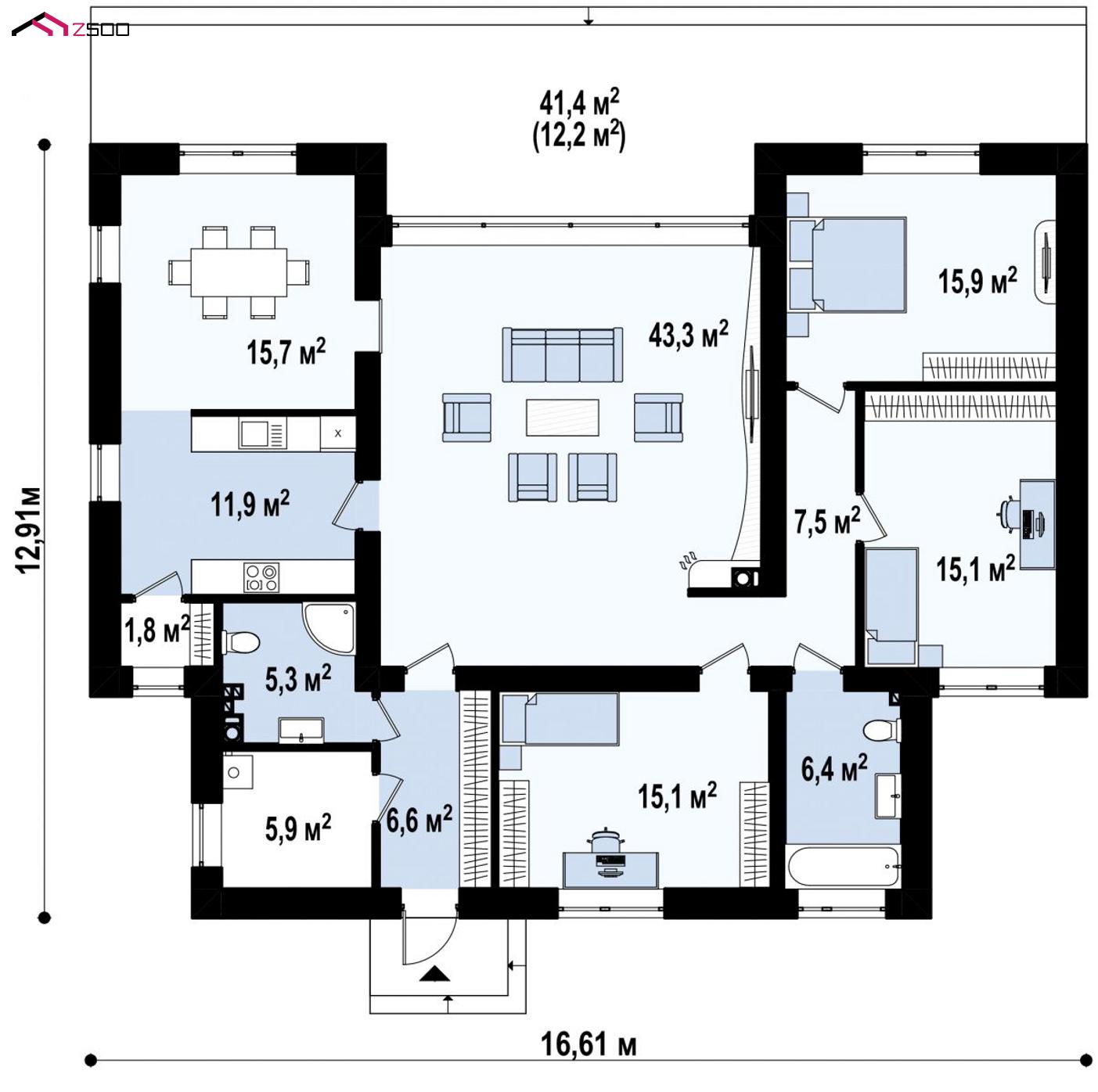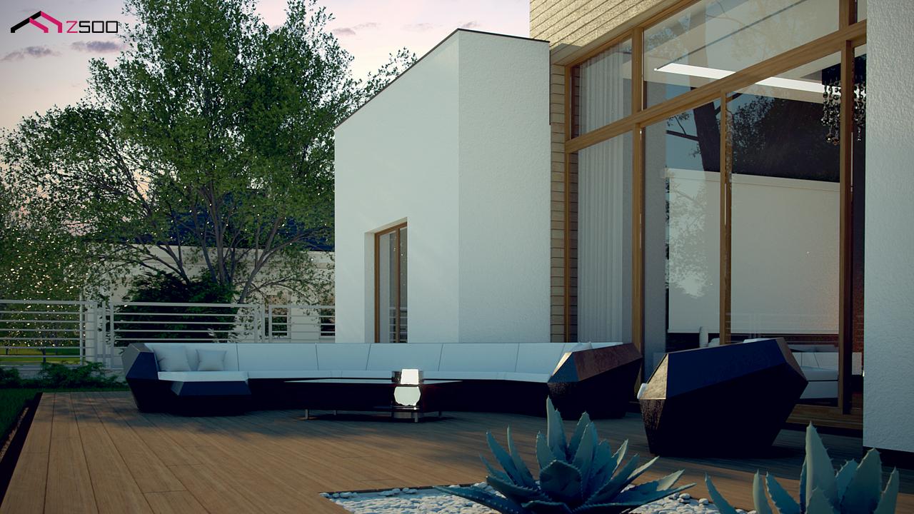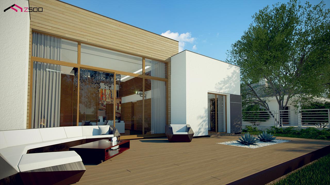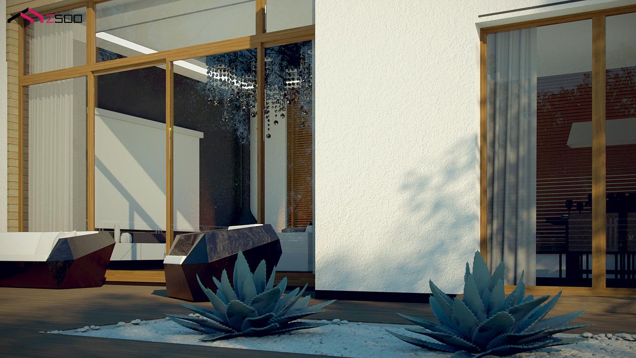 Zx111 — это одноэтажный дом в стиле современного минимализма, отличающийся плоской конструкцией кровли, средними размерами и масштабным остеклением.