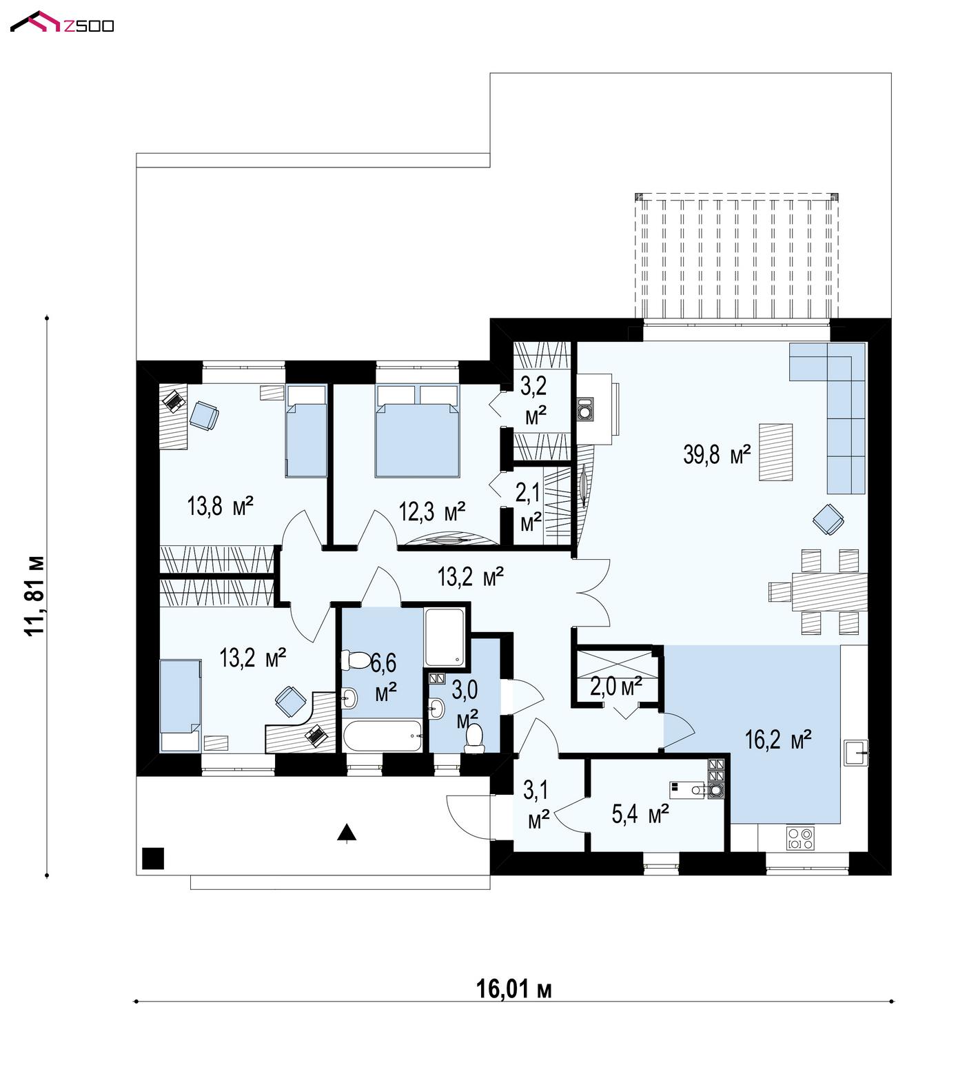 | Гостиная+ столовая | 39.8 ㎡ |