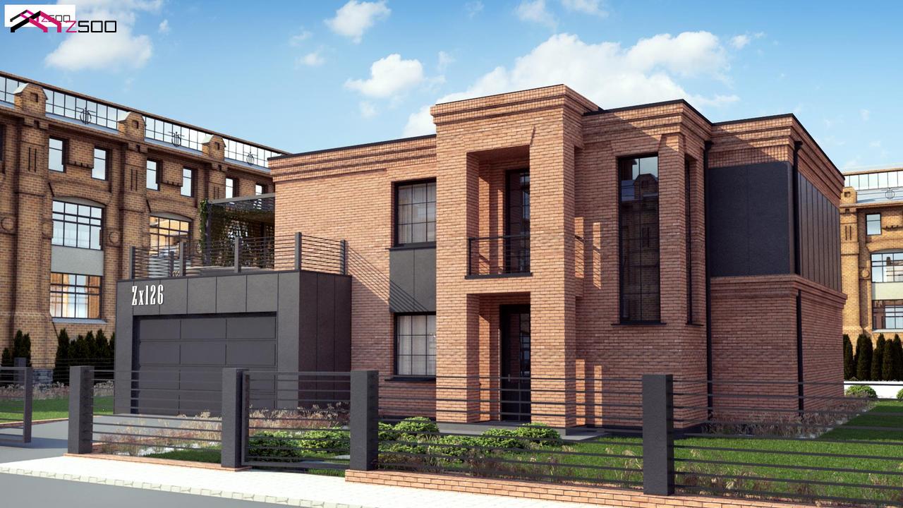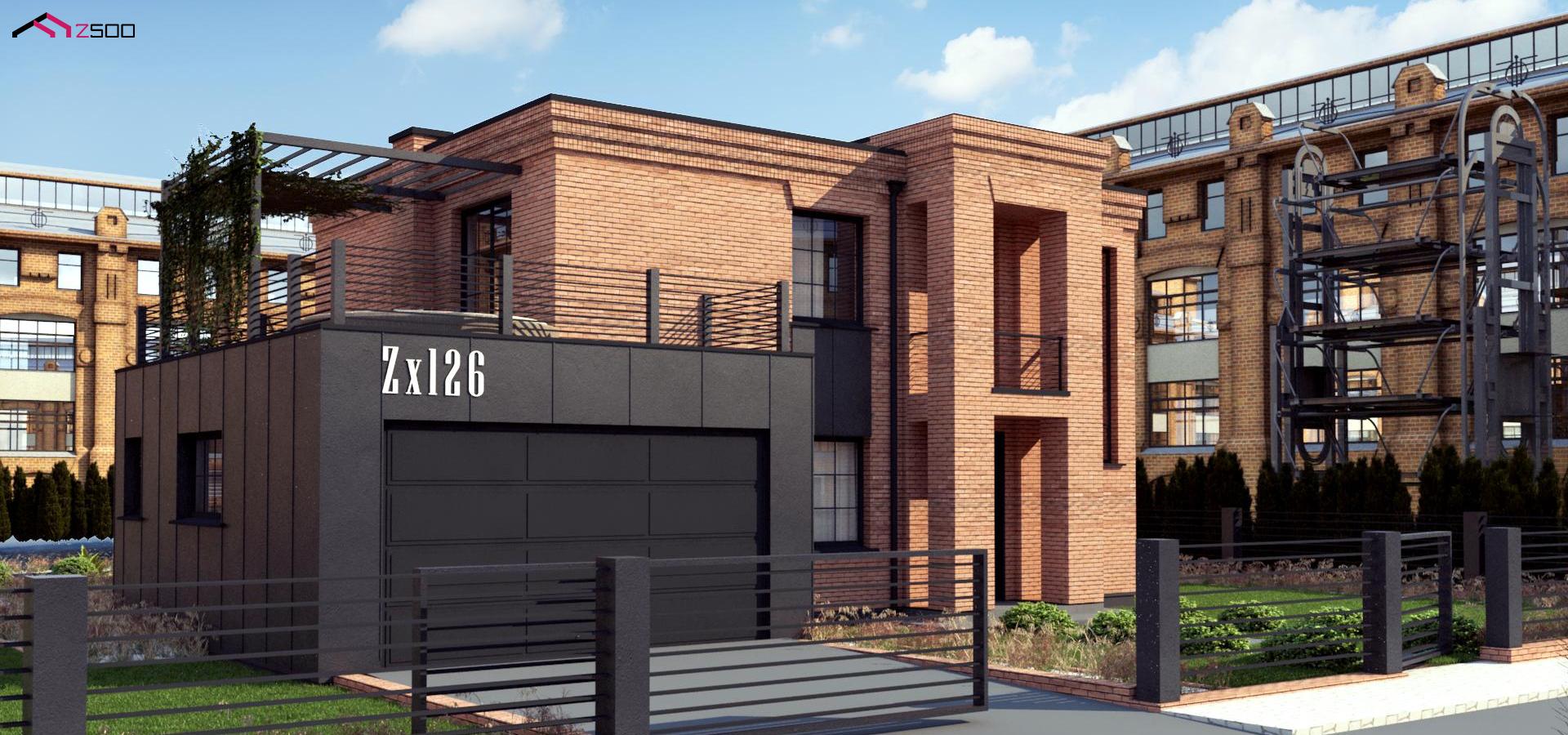 Zx126 представляет собой современный двухэтажный дом с облицовкой фасада из кирпича и функциональной планировкой пространства.