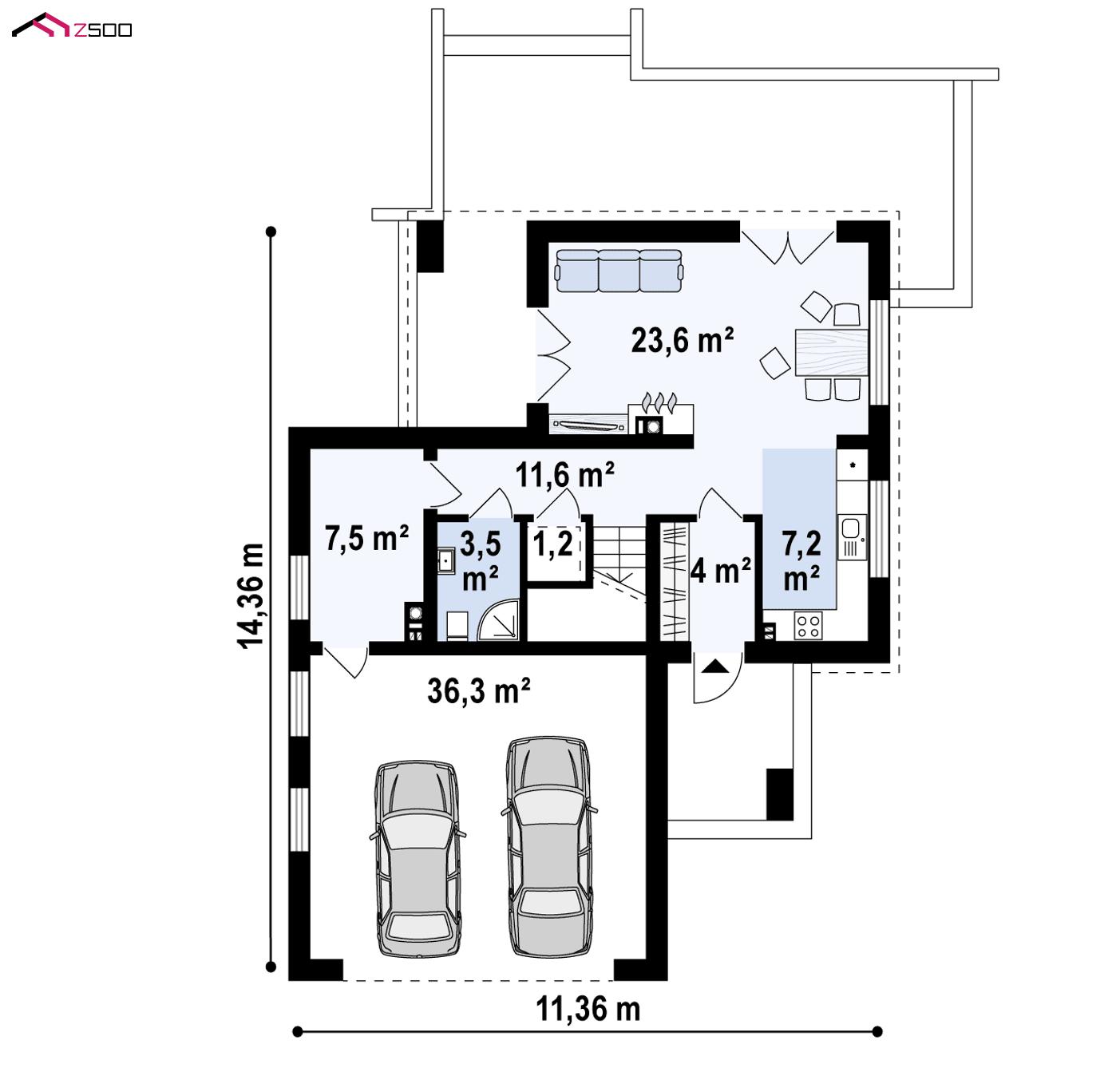 Zx134 – двухэтажный дом с гаражом на две машины.