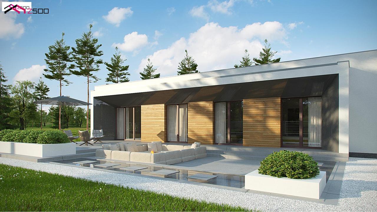 Zx135 представляет собой современный дом с плоской кровлей и компактной и удобной планировкой.