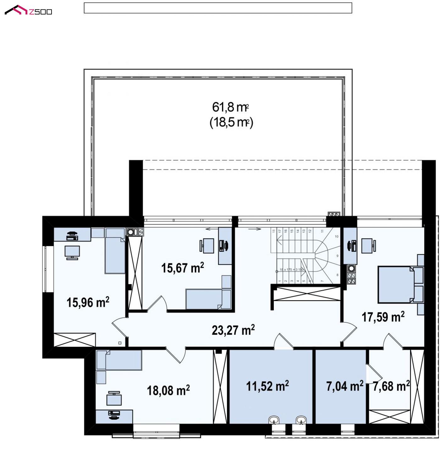 - Приватная зона представлена 4 спальнями на втором этаже.