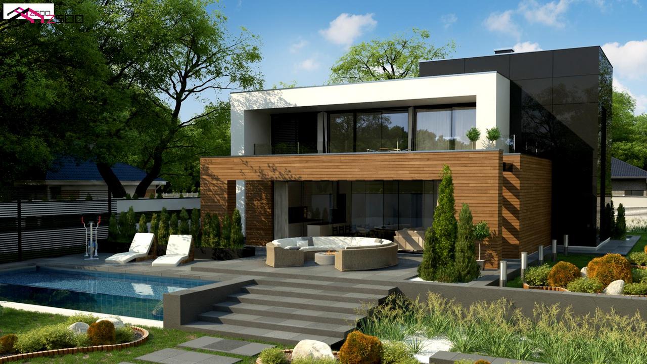 Zx152 – двухэтажный коттедж с плоской крышей и большой террасой.