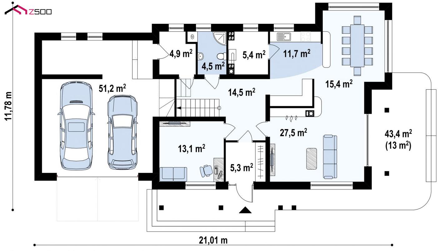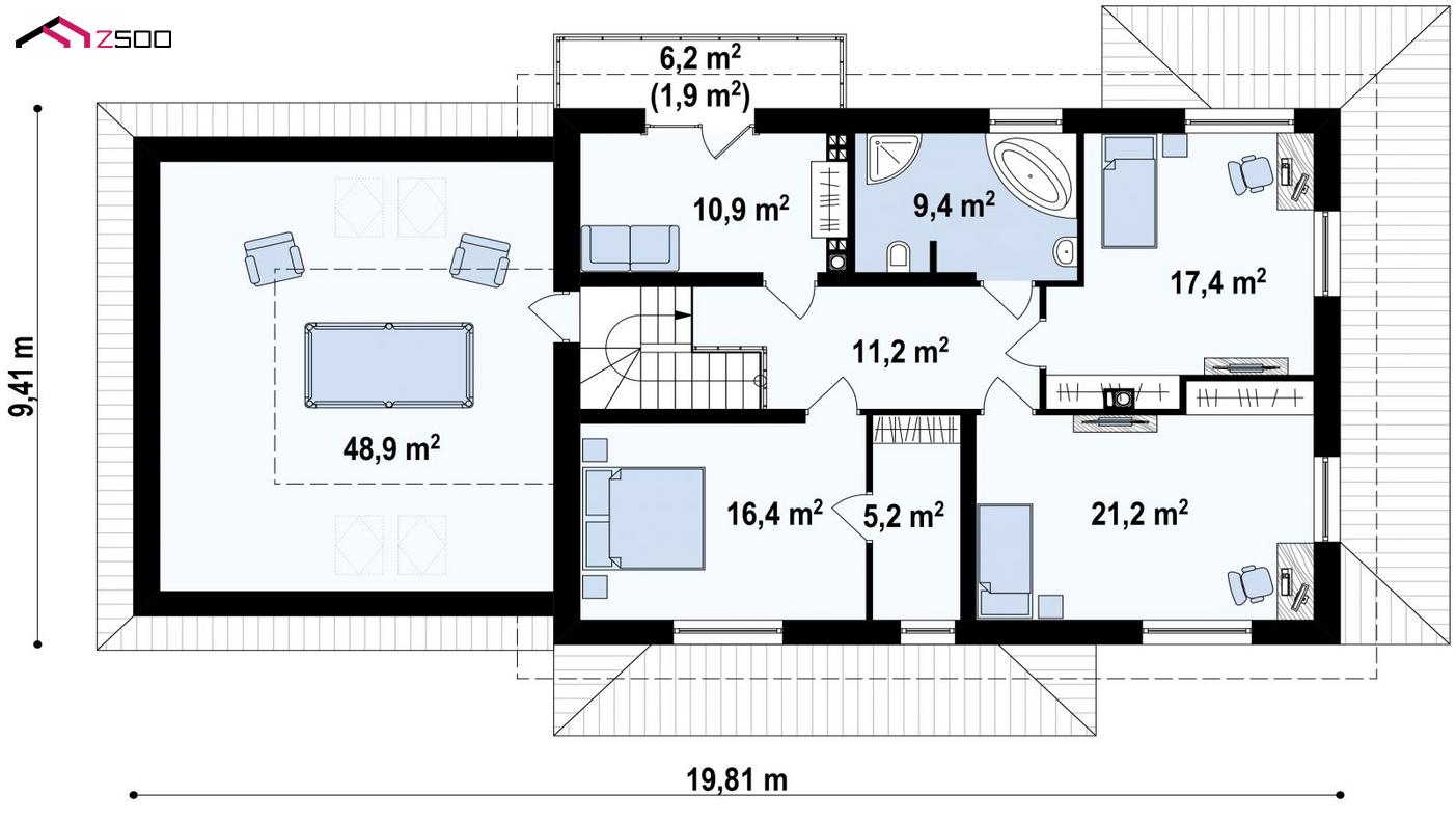 Проект Zx16– идеальный вариант для большой и дружной семьи. Для каждого члена семьи на большой площади найдется место для личного пространства и уединения.