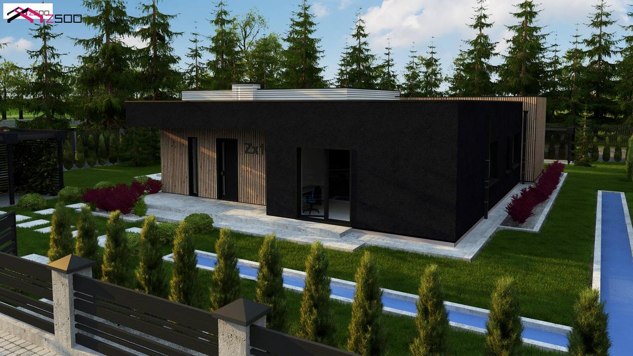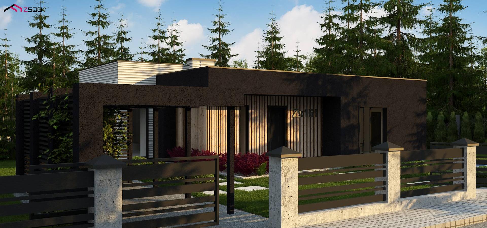 Zx161 представляет собой проект просторного одноуровневого дома с плоской кровлей.
