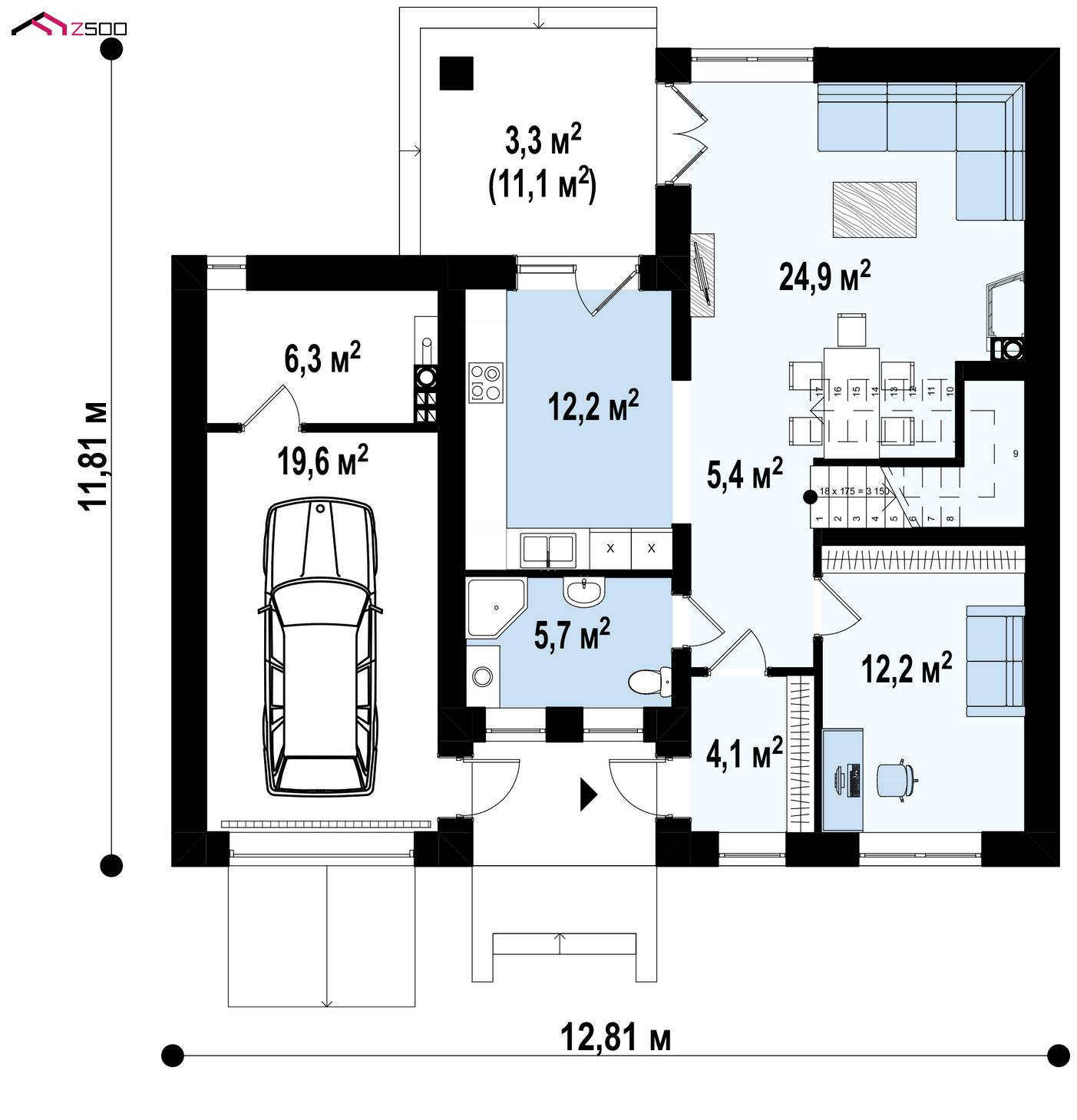 Zx24 v2 pk – вариант двухэтажного дома Zx24 v2 с плитами перекрытия.