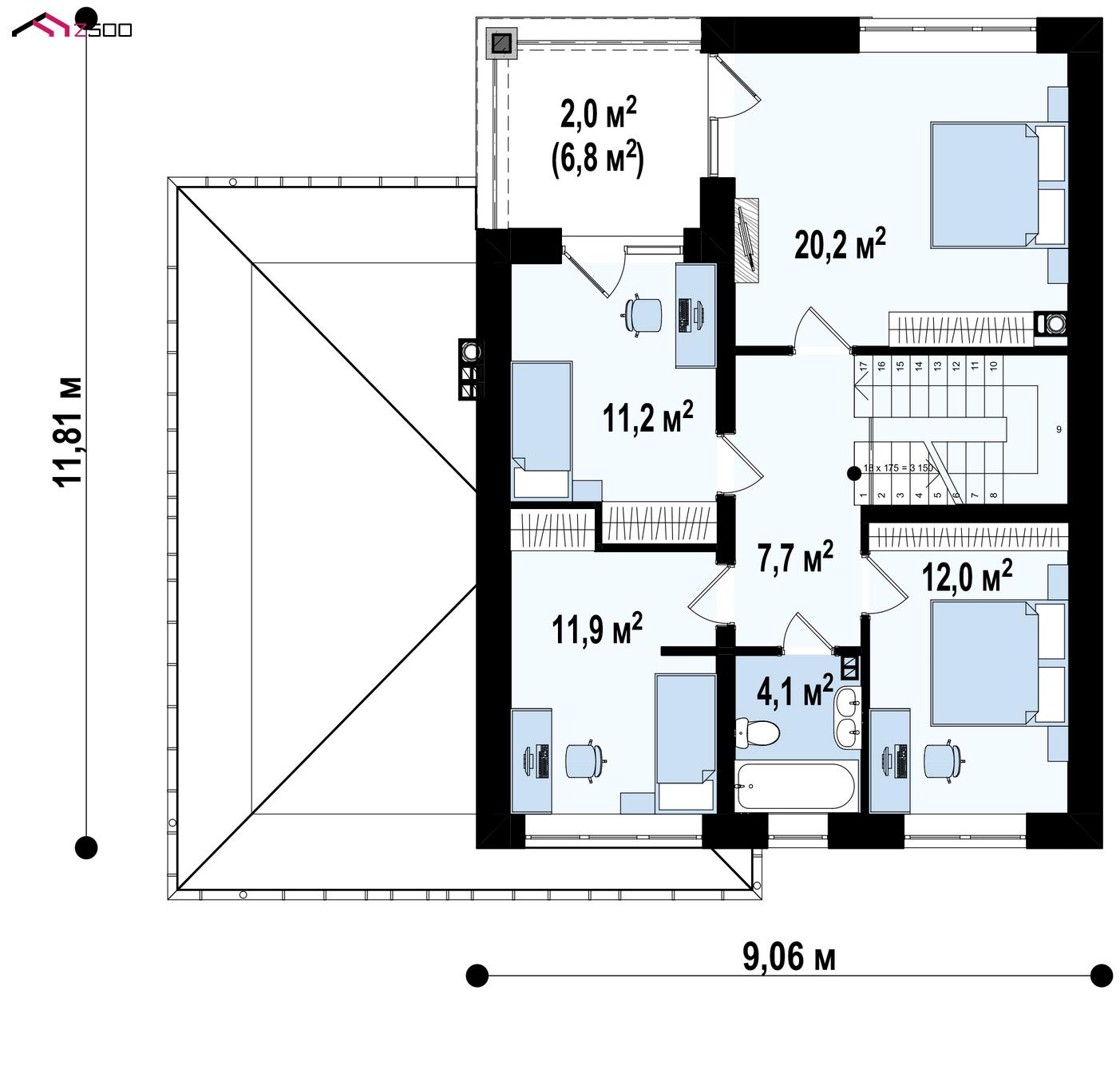 Вариант двухэтажного дома Zx24 v2 с плитами перекрытия