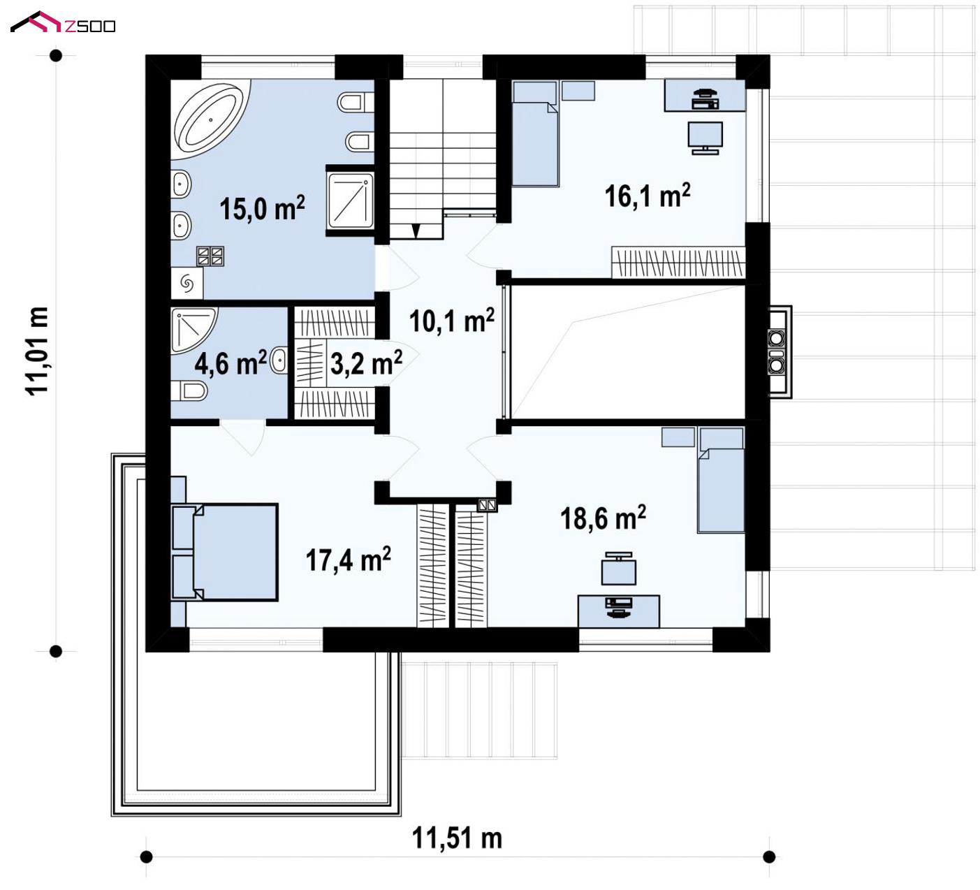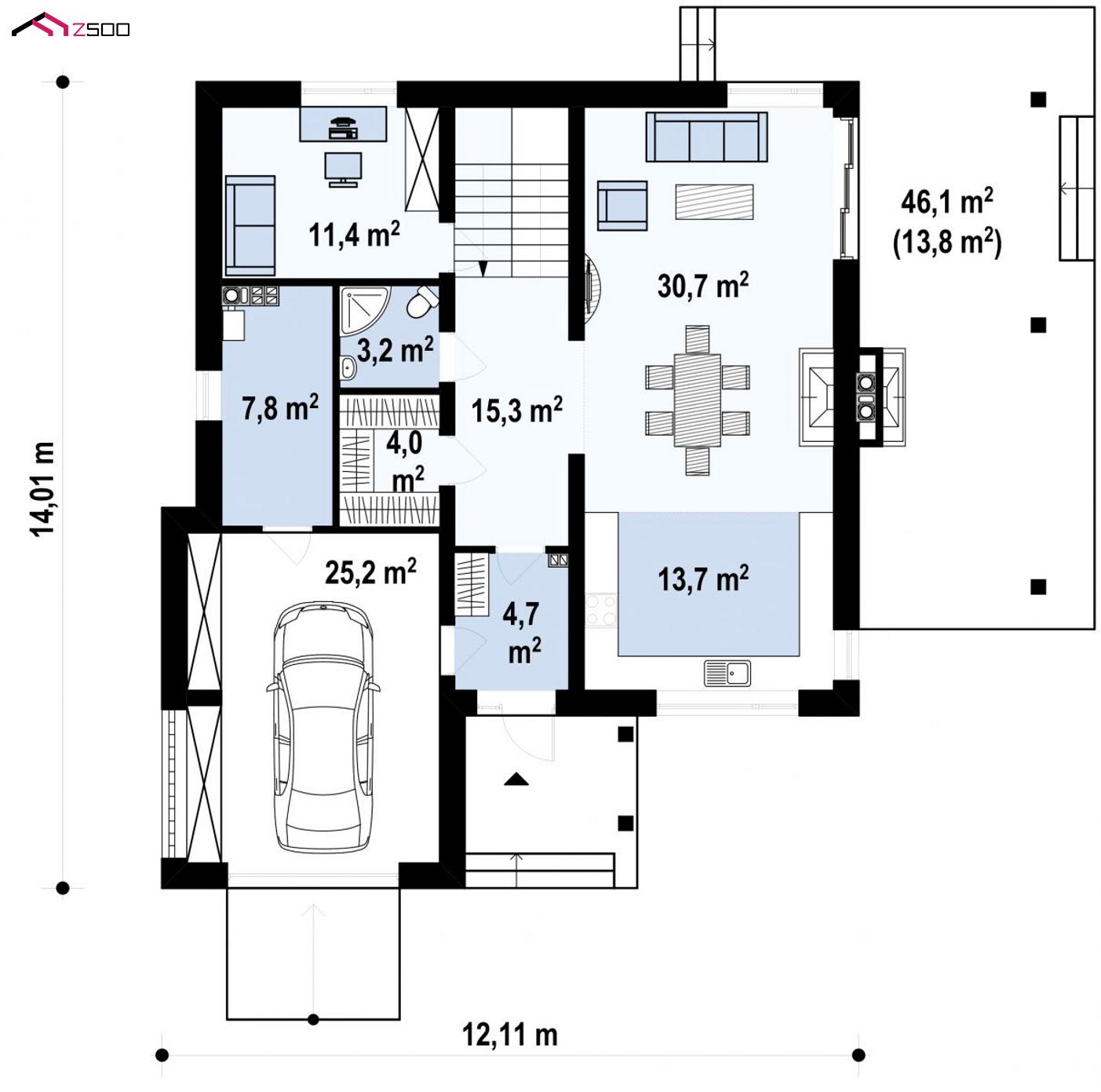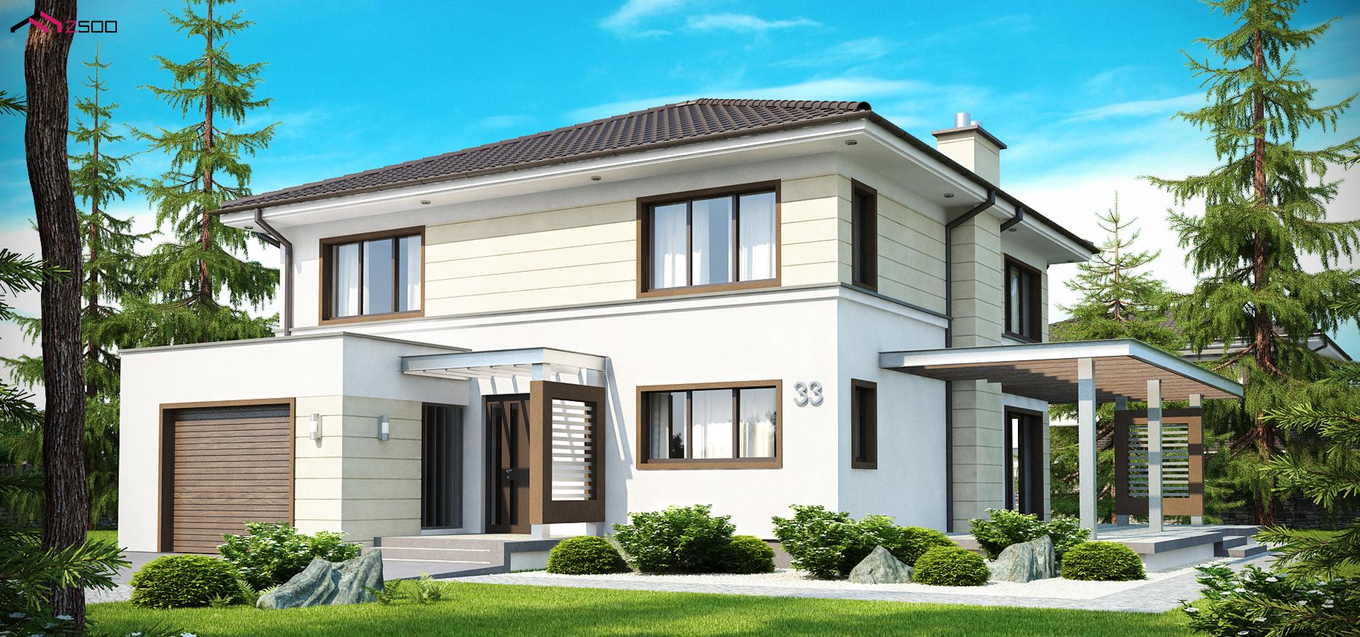 Проект Zx33 представляет комфортный двухэтажный дом со вторым светом над гостиной.