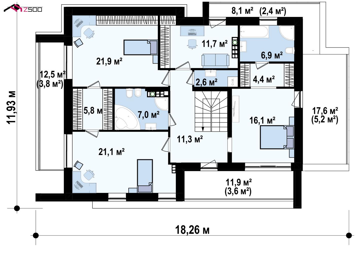 | Холл + лестница | 11.3 ㎡ |