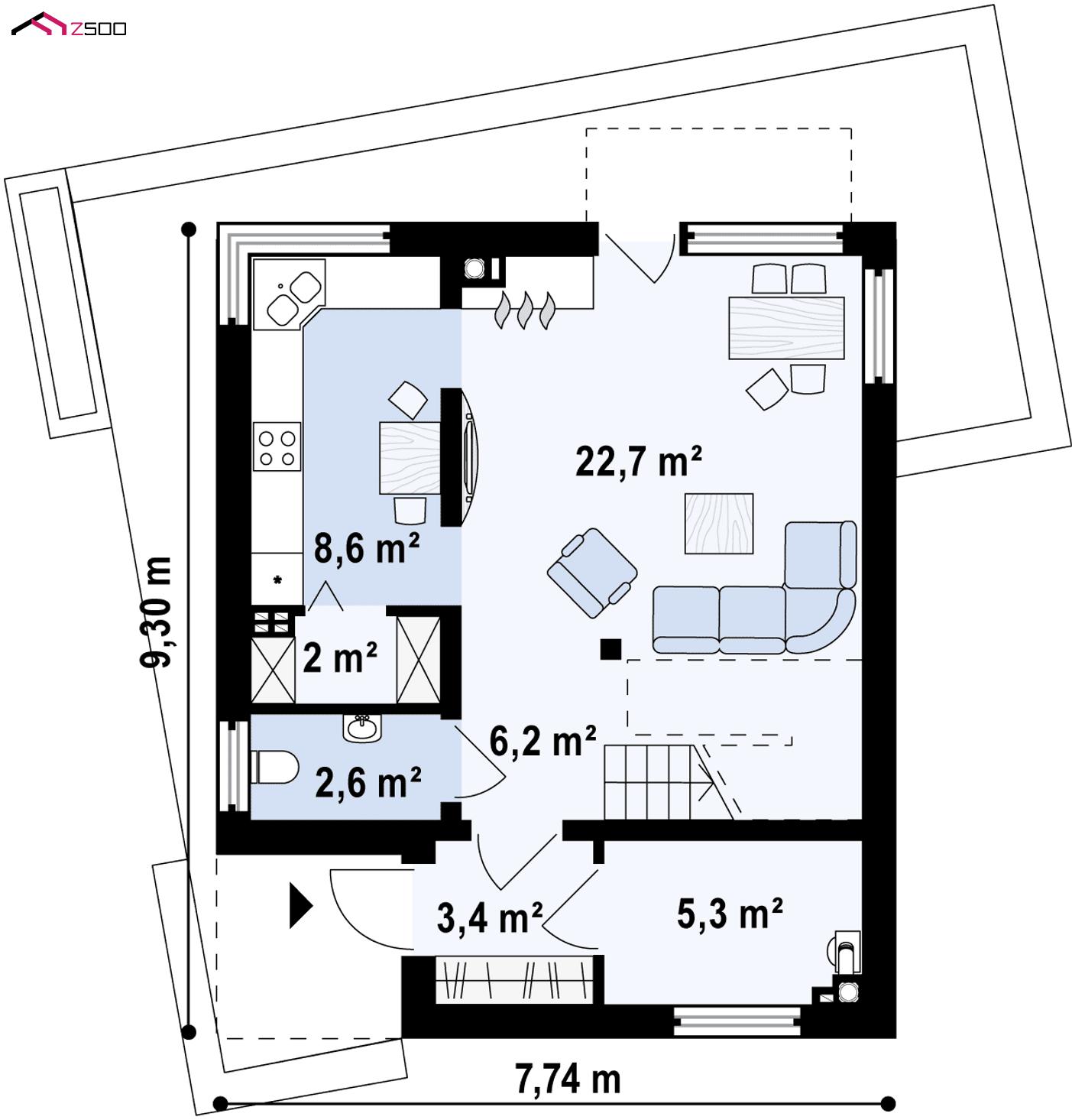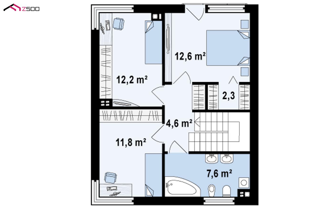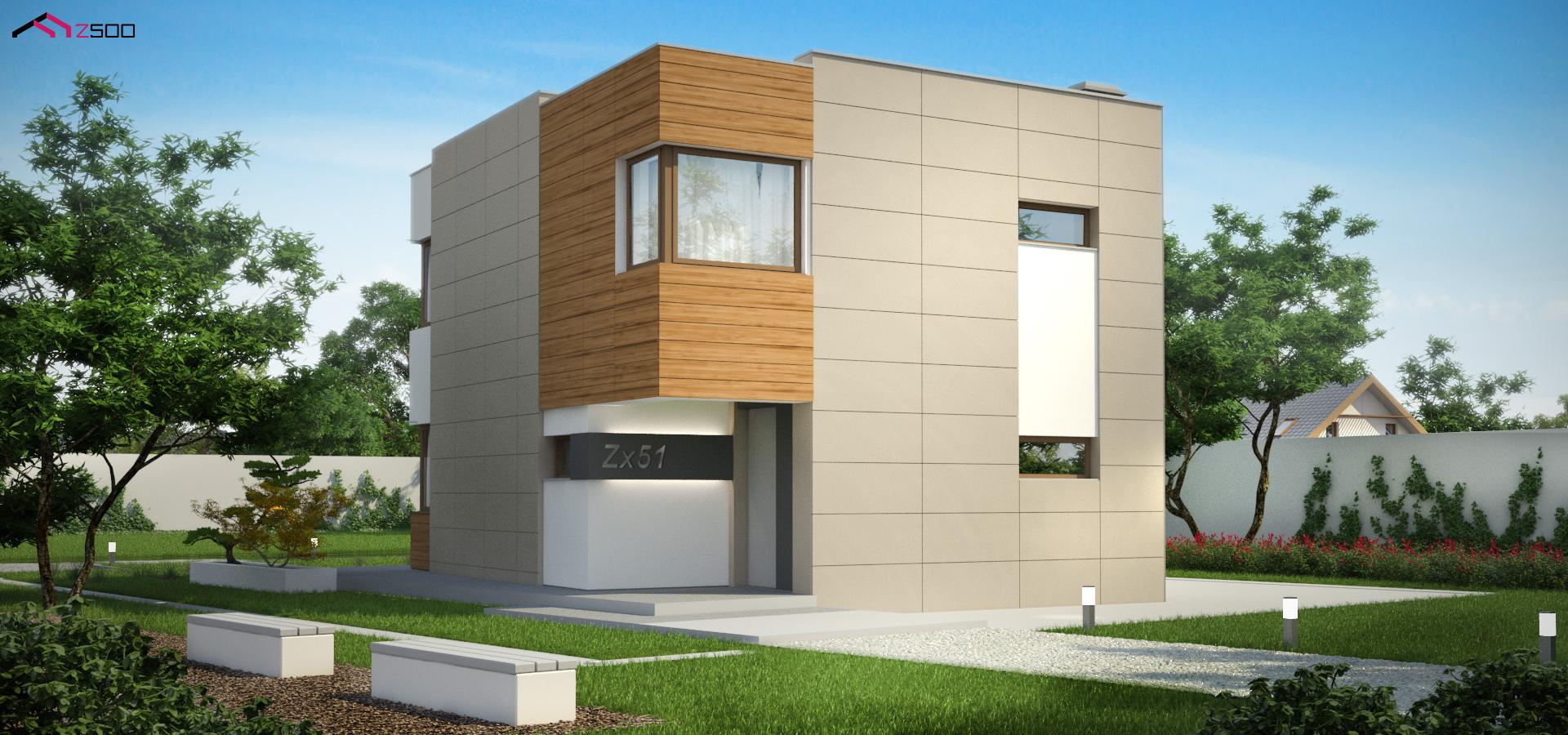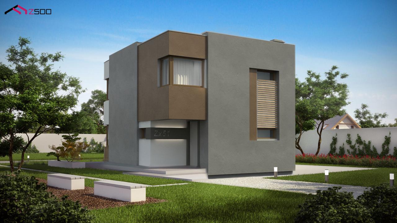 Проект Zx51 представляет компактный дом в стиле кубизма с тремя спальнями. Дом–куб выглядит очень выигрышно на открытых участках благодаря целому ряду интересных архитектурных решений: входная зона, угловое остекление, стильная колористика, которая буквально меняет дом с каждой стороны делают экстерьер броским и привлекательным. В то же время простая форма и удачная планировка внутренних помещений позволили сделать проект энергосберегающим.