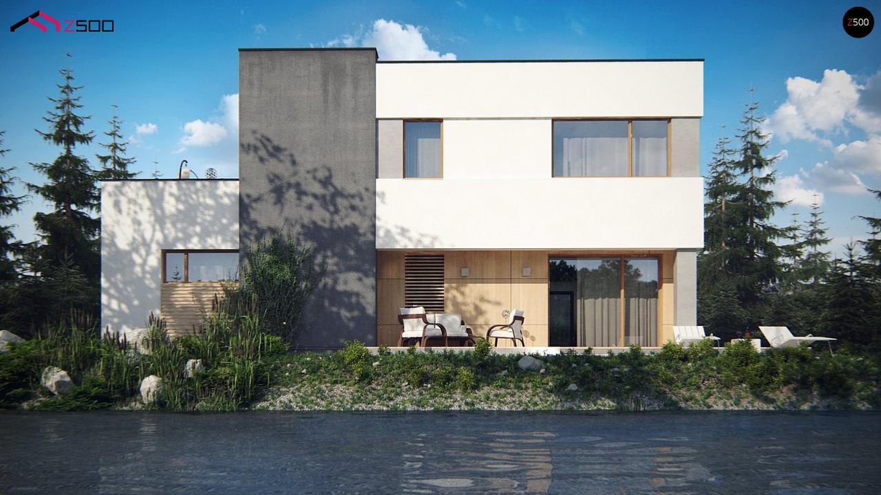 Zx59 pk представляет собой вариант проекта Zx59 – двухэтажный дом в модернистском стиле с гаражом и террасой на верхнем этаже, с плитами перекрытия.
