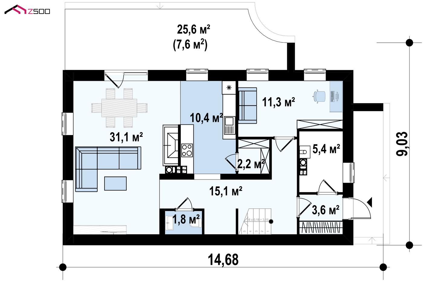 | Терраса | 7.6 ㎡ |