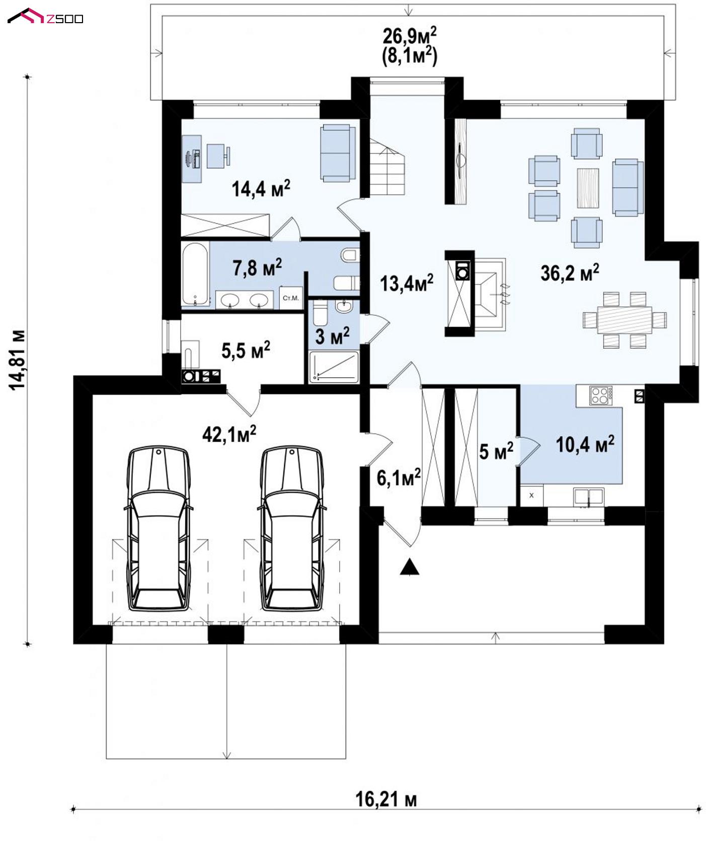 Проект Zx62 A – это дом для людей, которые любят большие пространства, функциональность площадей и комфорт.