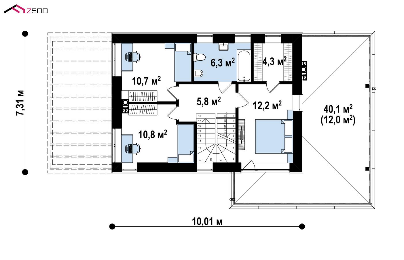 | площадь кровли | 12 м² |